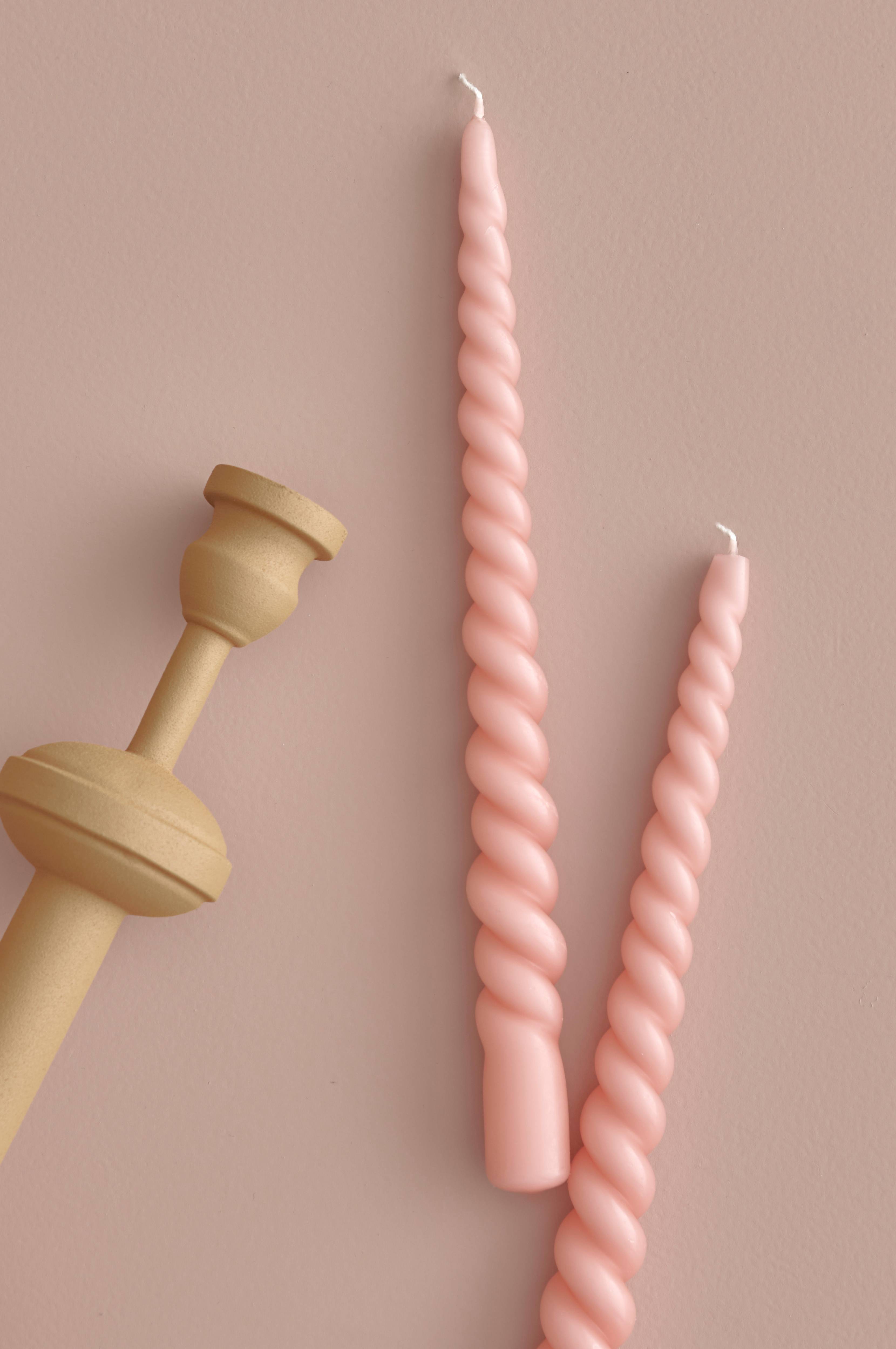 Snoede lys i 2-pak. Højde 29 cm, diameter 2,2 cm. Brændetid ca. 9 timer. Lyset er fremstillet af 100% paraffin. Paraffin anvendes i stedet for stearin, eftersom dette materiale er blødere, sådan at lyset kan snoes og få sin form. Dette er ikke muligt med stearin, som er for hårdt til at sno.