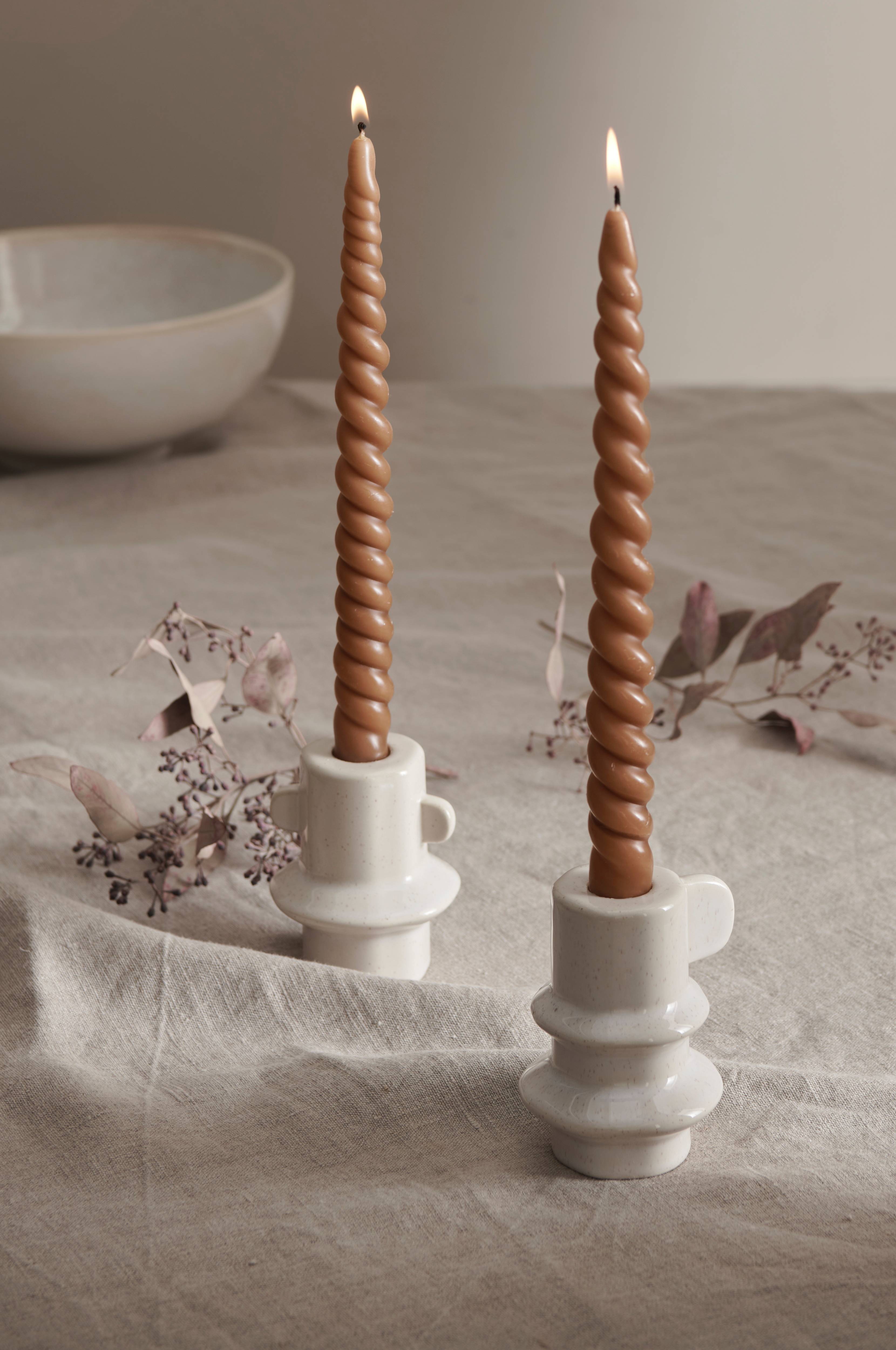 Snoede lys i 2-pak. Højde 29 cm, diameter 2,2 cm. Brændetid ca. 9 timer. Lyset er fremstillet af 100% paraffin. Paraffin anvendes i stedet for stearin, eftersom dette materiale er blødere, sådan at lyset kan snoes og få sin form. Dette er ikke muligt med stearin, som er for hårdt til at sno.