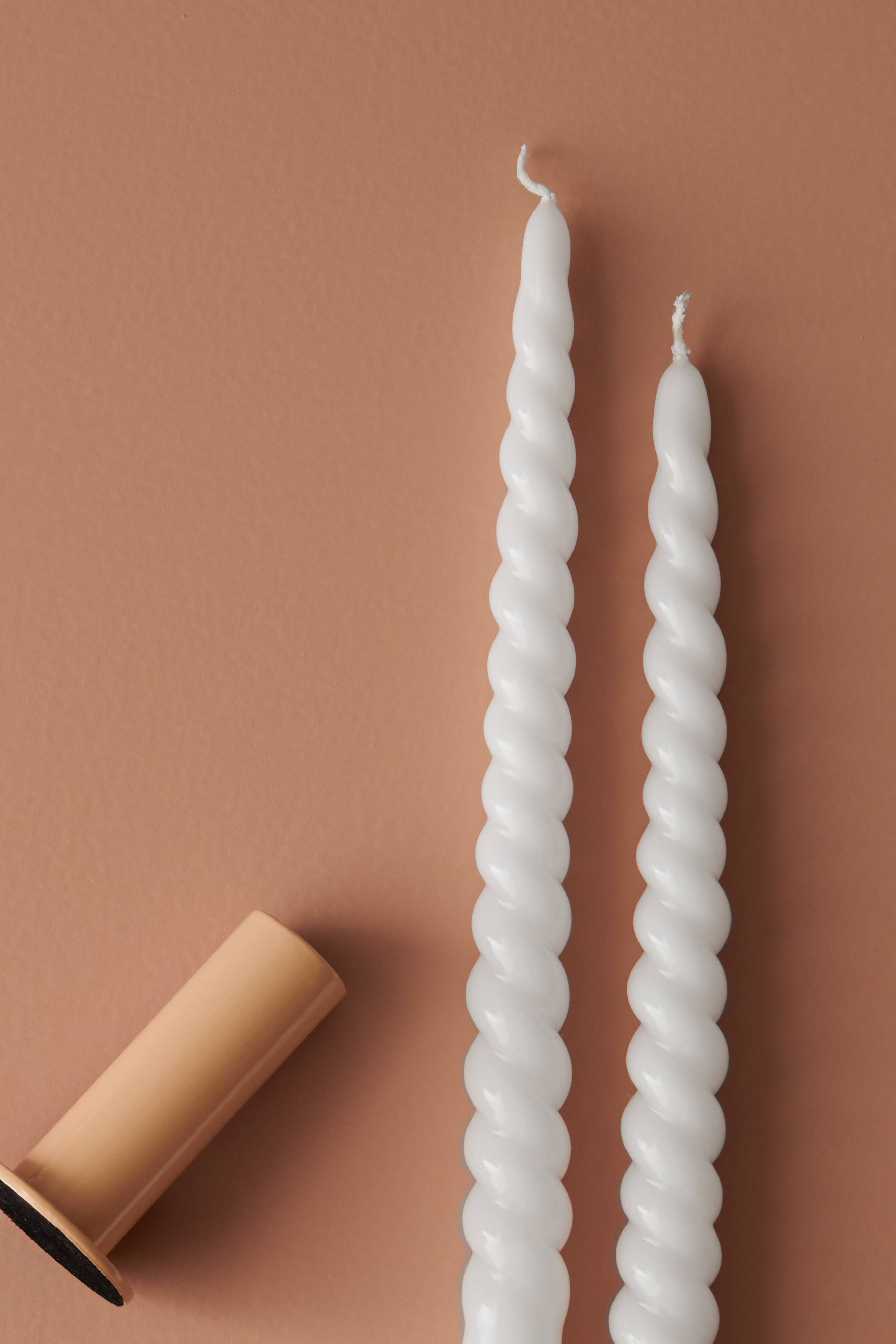Snoede lys i 2-pak. Højde 29 cm, diameter 2,2 cm. Brændetid ca. 9 timer. Lyset er fremstillet af 100% paraffin. Paraffin anvendes i stedet for stearin, eftersom dette materiale er blødere, sådan at lyset kan snoes og få sin form. Dette er ikke muligt med stearin, som er for hårdt til at sno.