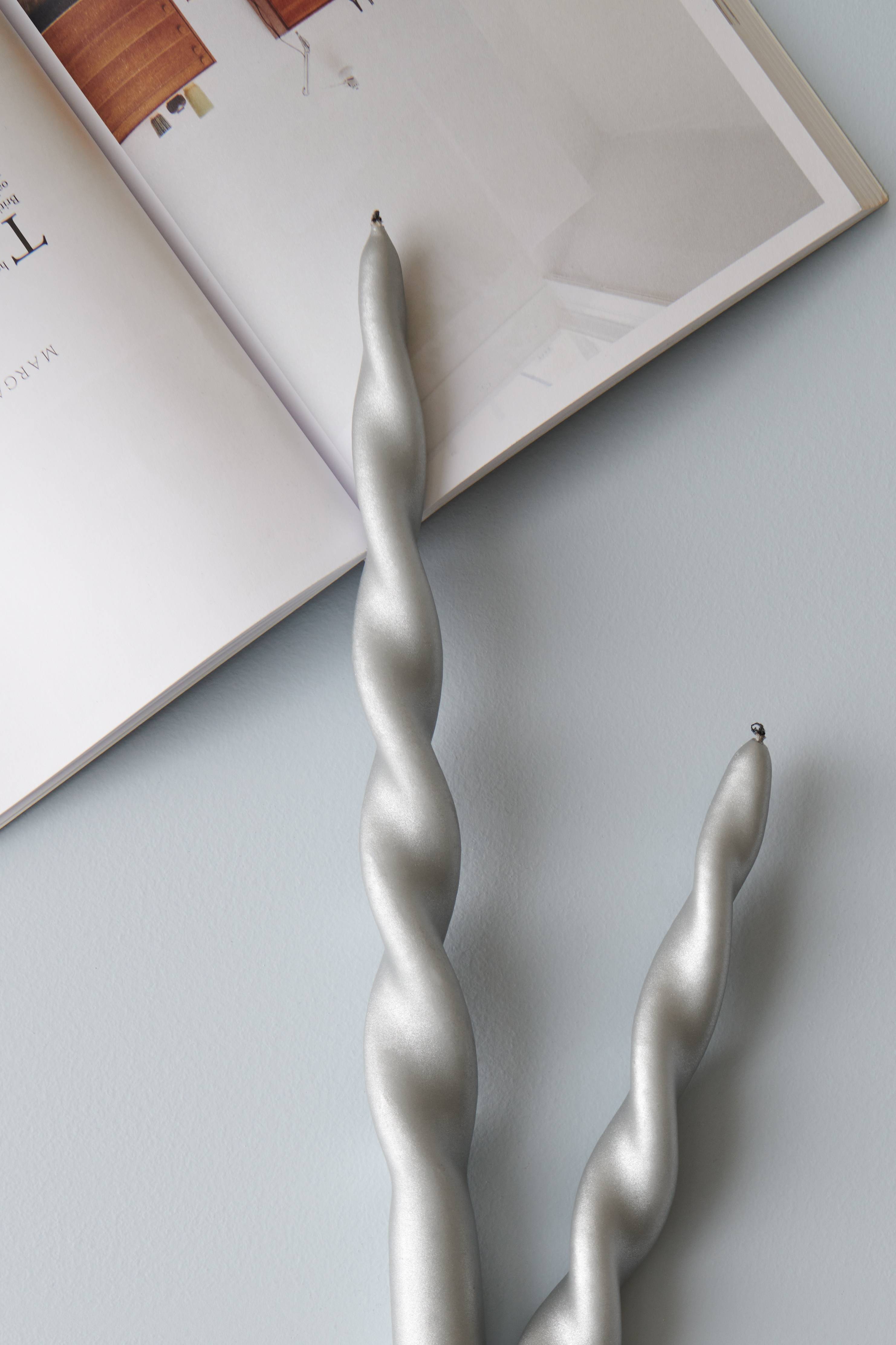 Snoede, flade lys i 2-pak. Højde 29 cm, diameter 2,2 cm. Brændetid ca. 9 timer. Lyset er fremstillet af 100% paraffin. Paraffin anvendes i stedet for stearin, eftersom dette materiale er blødere, sådan at lyset kan snoes og få sin form. Dette er ikke muligt med stearin, som er for hårdt til at sno.