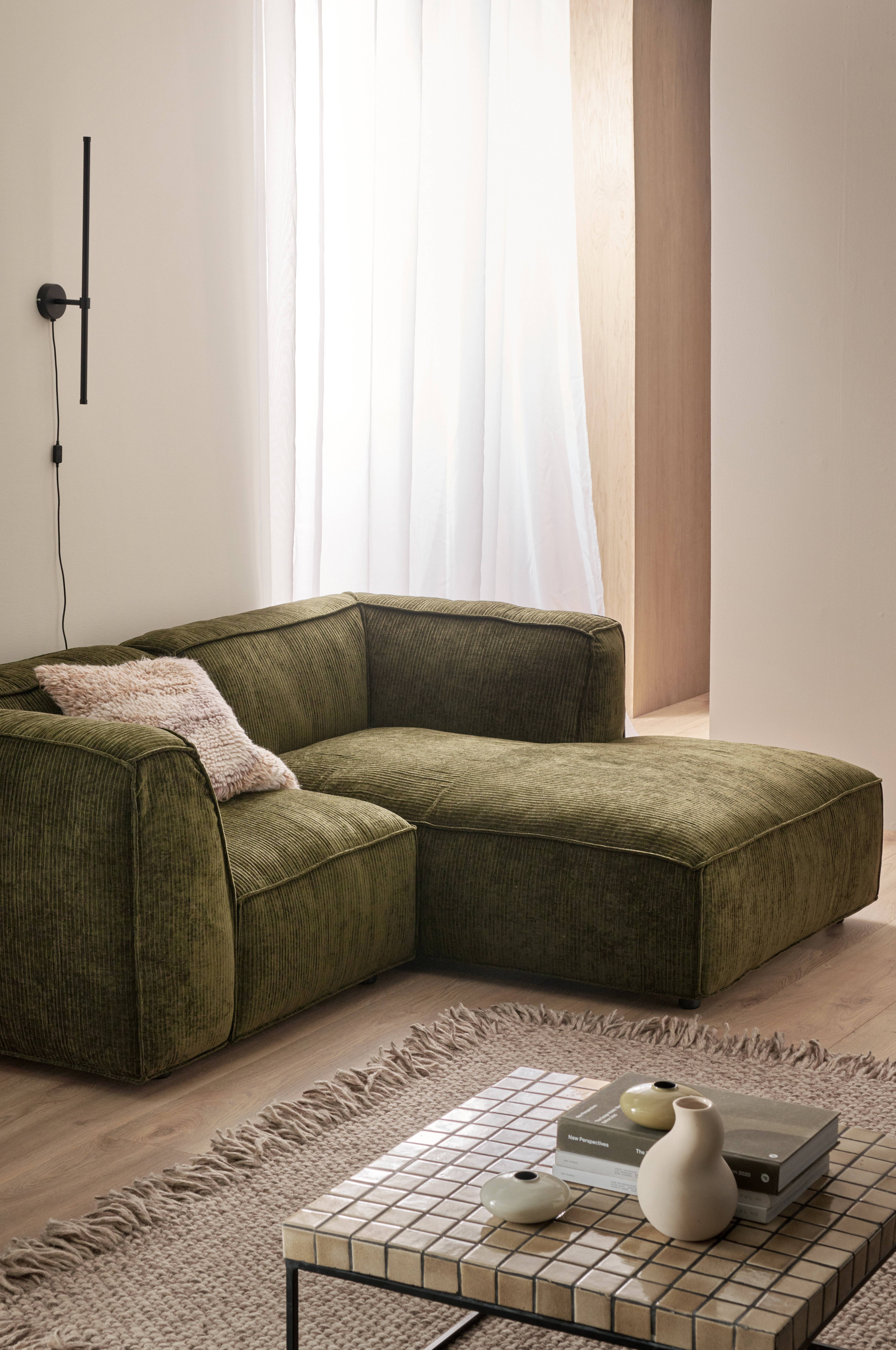 2-pers. sofa med betræk i bredriflet fløjl. Højrevendt chaiselong (kan ikke venstremonteres).