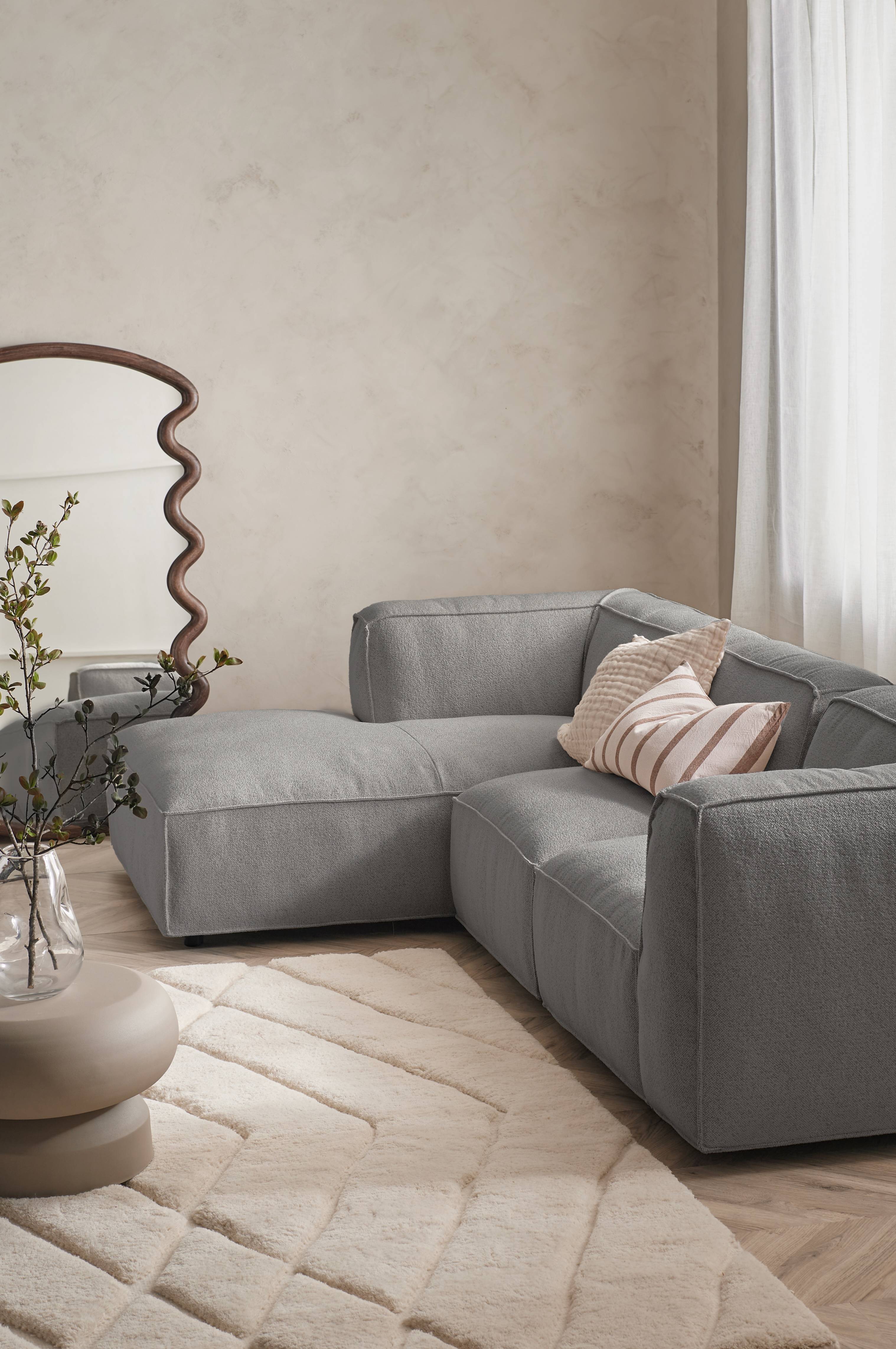 3-pers. sofa med betræk i bouclé. Venstrevendt chaiselong (kan ikke højremonteres).