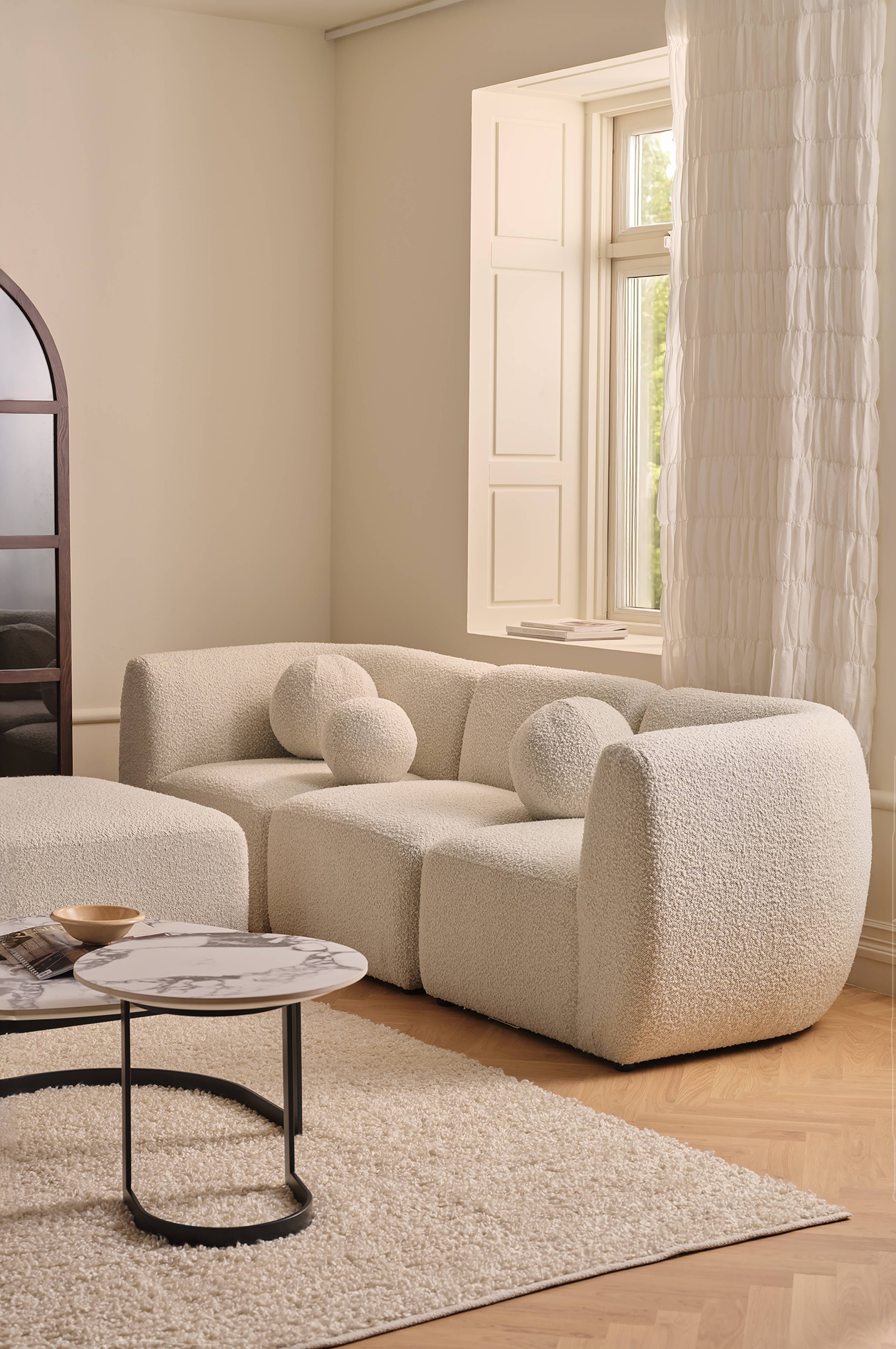 BOMELLI-sofaen består af 4 dele: 2 hjørnedele, en midterdel og en puf. Alle dele kan bruges hver for sig eller sættes sammen. Puffen kan monteres både til venstre og til højre.