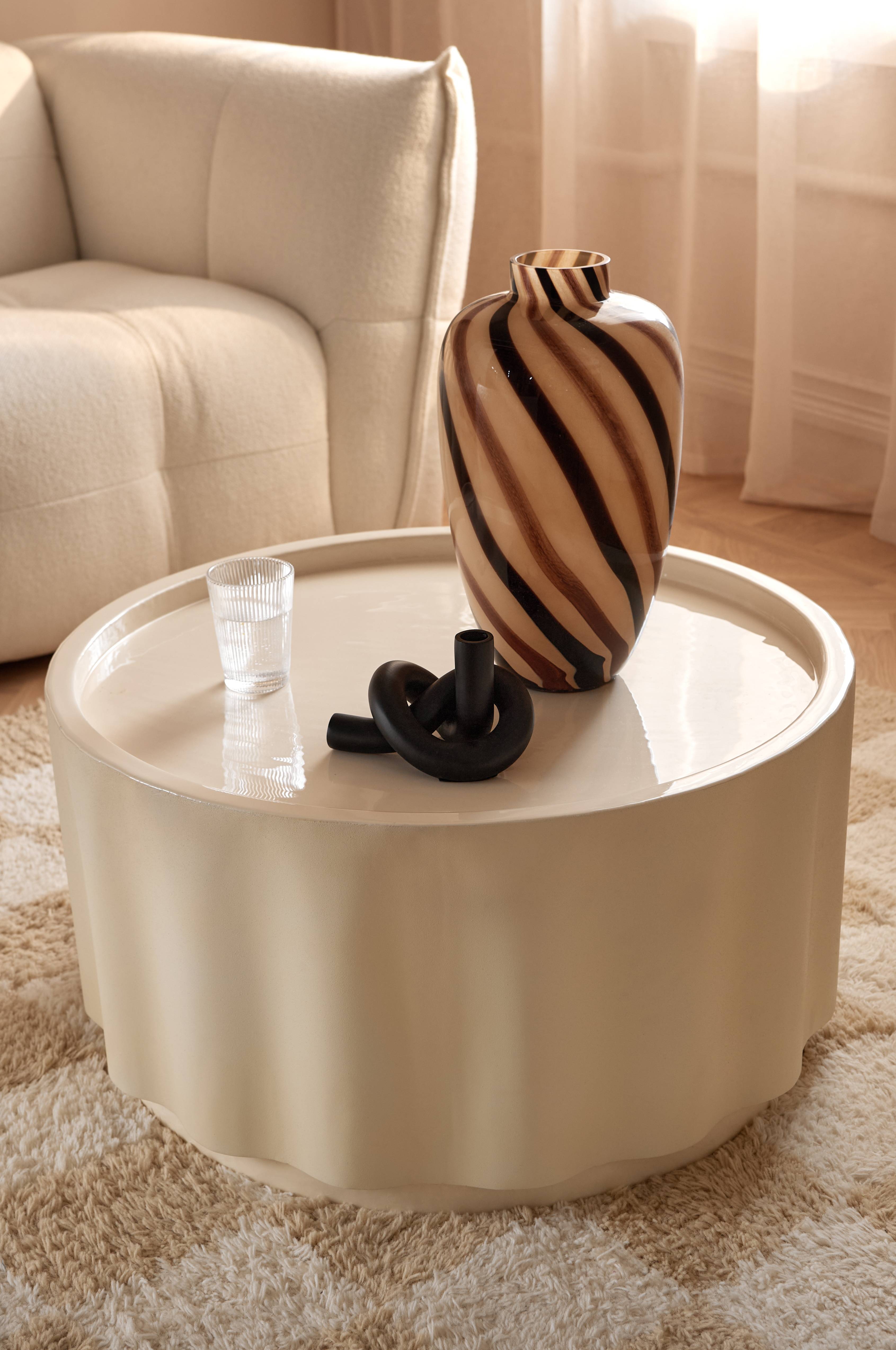 • Rundt sofabord i metal• Mat, sandet afslutning på siden• Skinnende bordplade med kant hele vejen rundt
