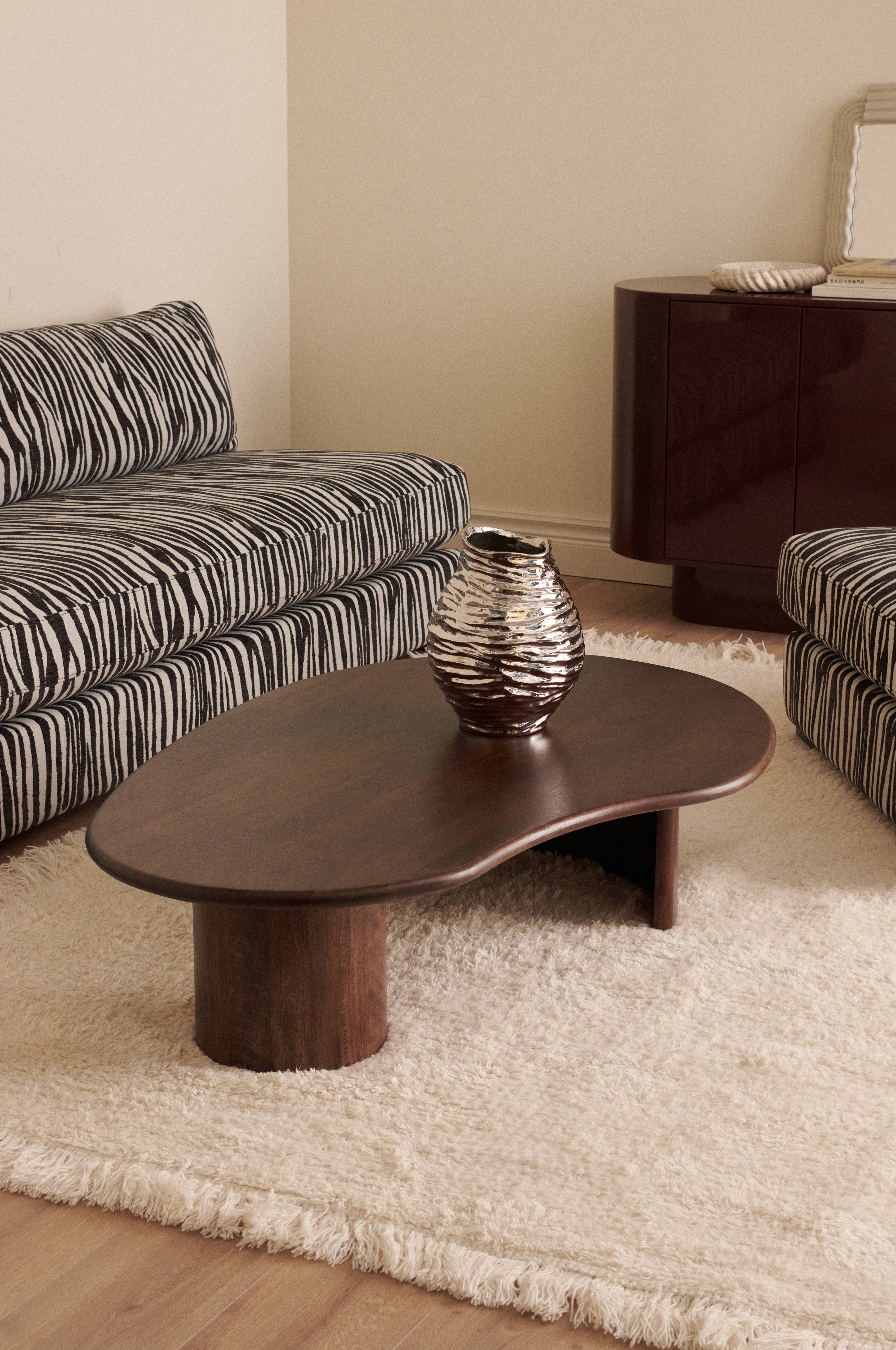 • Sofabord i mangotræ med vokset afslutning• Bordplade med organisk form og afrundede kanter• Rundt ben på den ene side• Halvmåneformet ben på den anden side• Maks. vægt: 50 kg