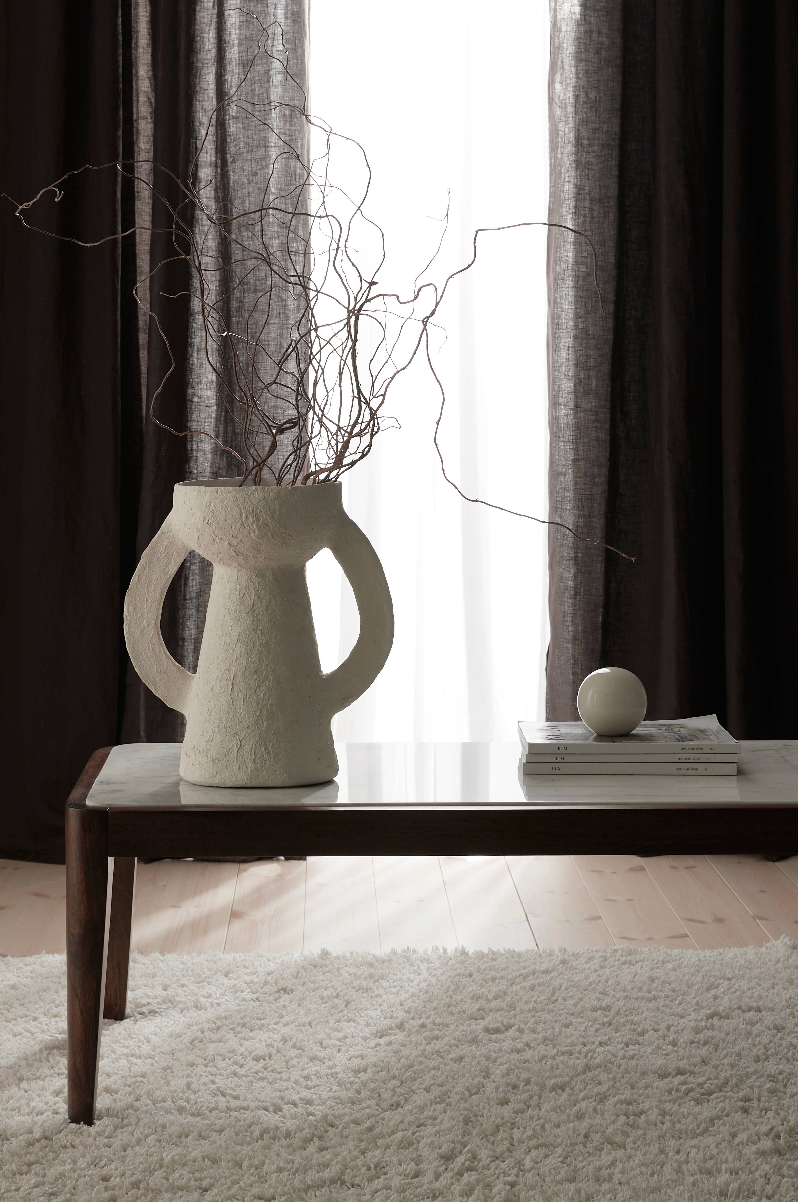 Sofabord i mangotræ med bordplade af marmor. Med en MDF-plade som støtte under marmorpladen. Mål: 56x115 cm. Højde 43 cm. Lettere montering.