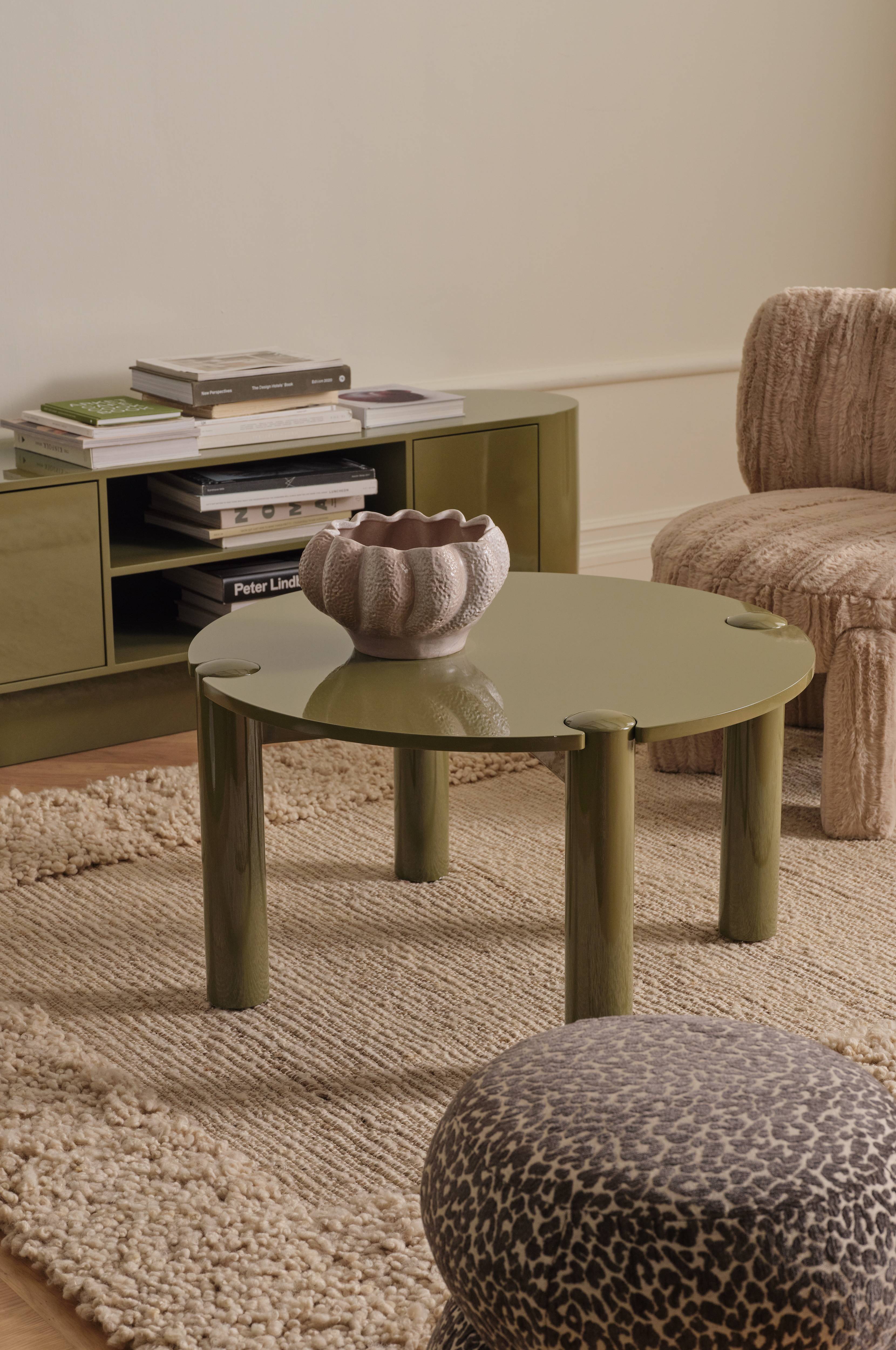 • Rundt sofabord i MDF med skinnende PU-belægning