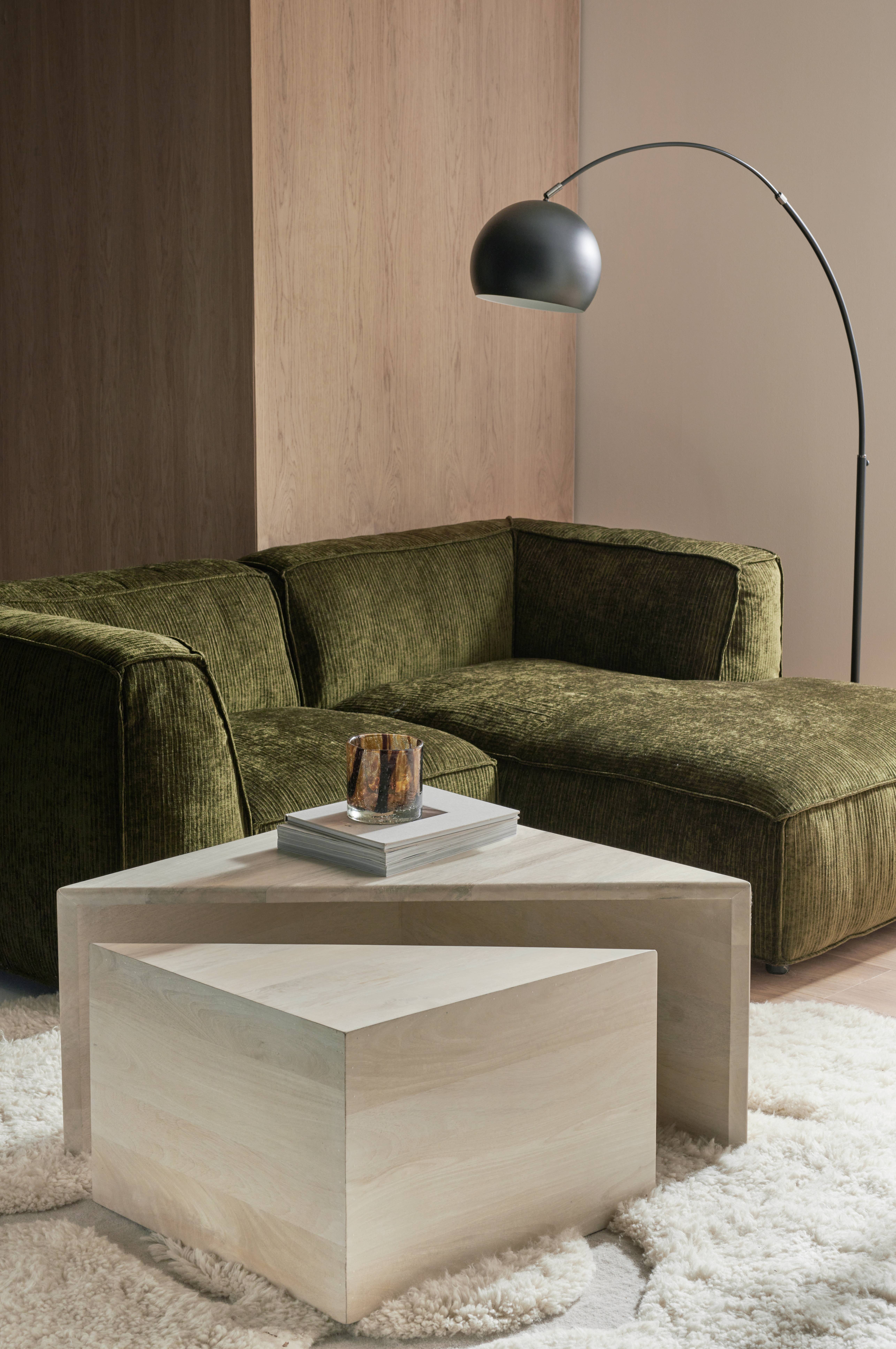 2 trekantede matchende sofaborde i forskellige størrelser. Af mangotræ. Stort bord: Lang kant 105 cm. 74,5 cm på de kortere sider. Højde 45 cm og fri højde under bordet 42 cm. Lille bord: Lang kant 83 cm. 59 cm på de kortere sider. Højde 40 cm og fri højde under bordet 37 cm.