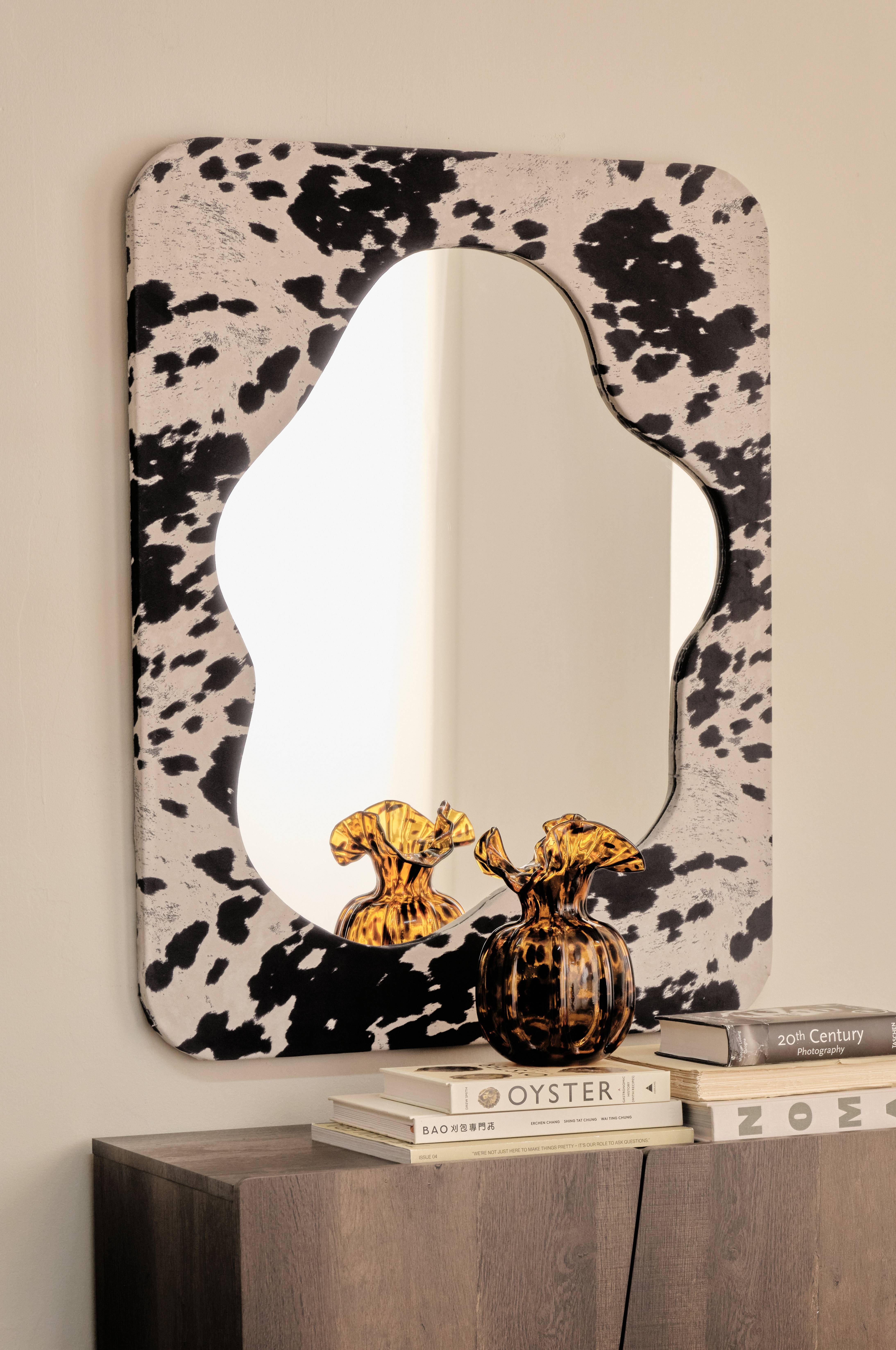 • Vægmonteret spejl• Ramme i mønstret fløjl med en blød, organisk form• Bagside i MDF