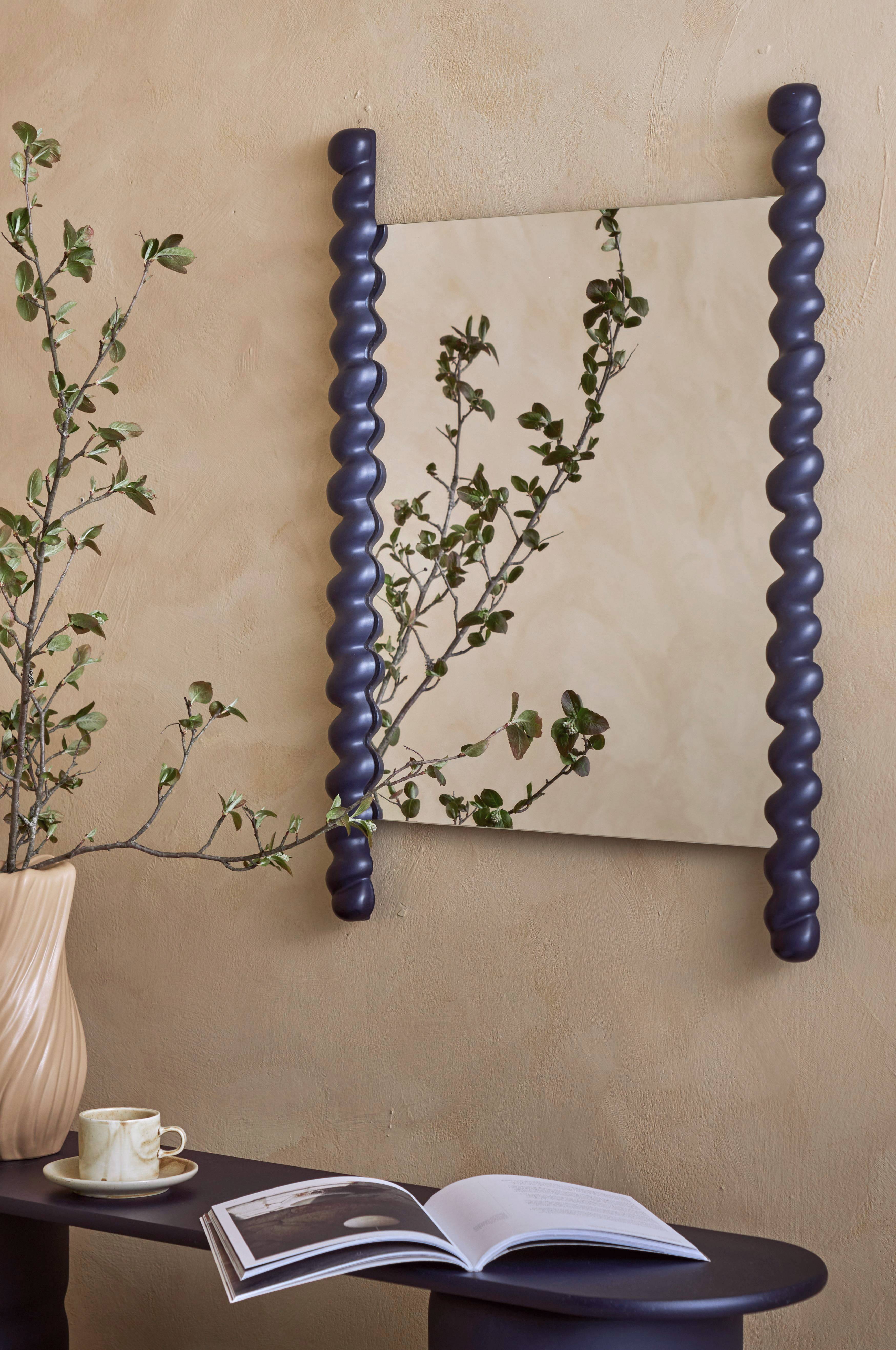 Spejl med sider i massivt mangotræ. Hænges lodret. Totalmål: 80x60 cm. Spejlets mål: 60x50 cm.