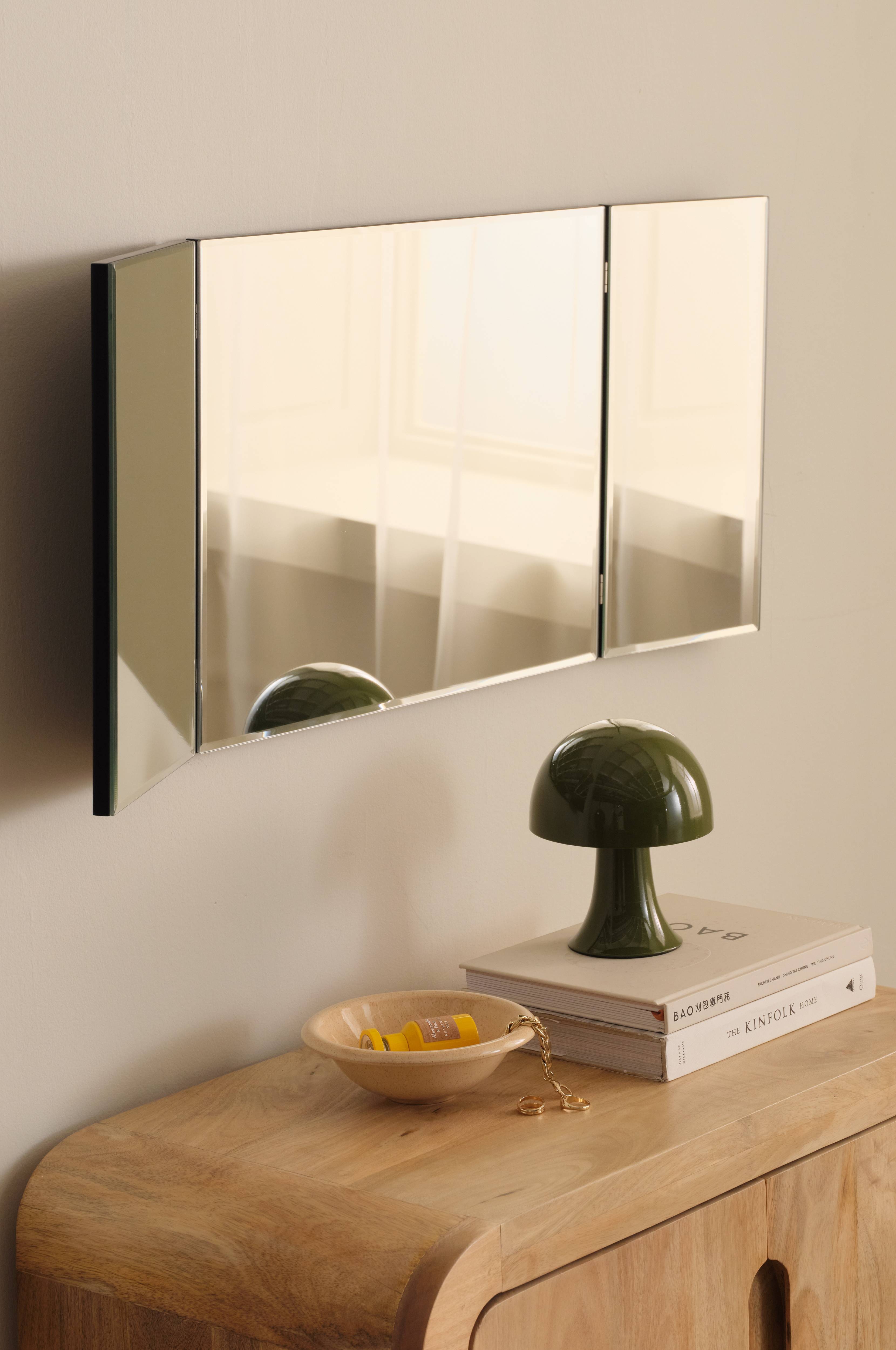 • Vægmonteret spejl med to sammenfoldelige vinger• Bagside i MDF• Hver vinge er 20 cm bred