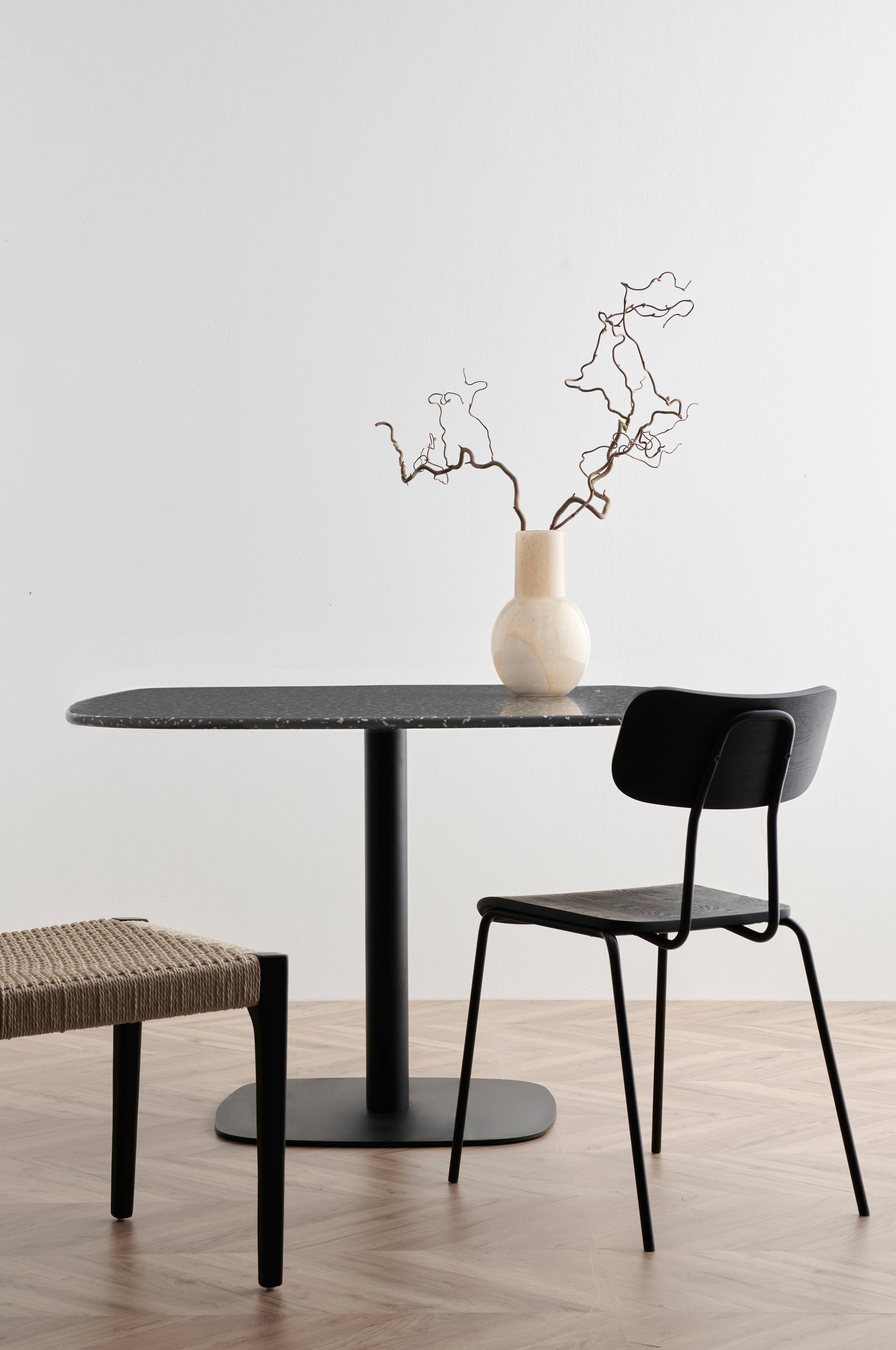 Spisebord med bordplade af MDF beklædt med terrazzo-folie. Understel af metal. Lettere samling.