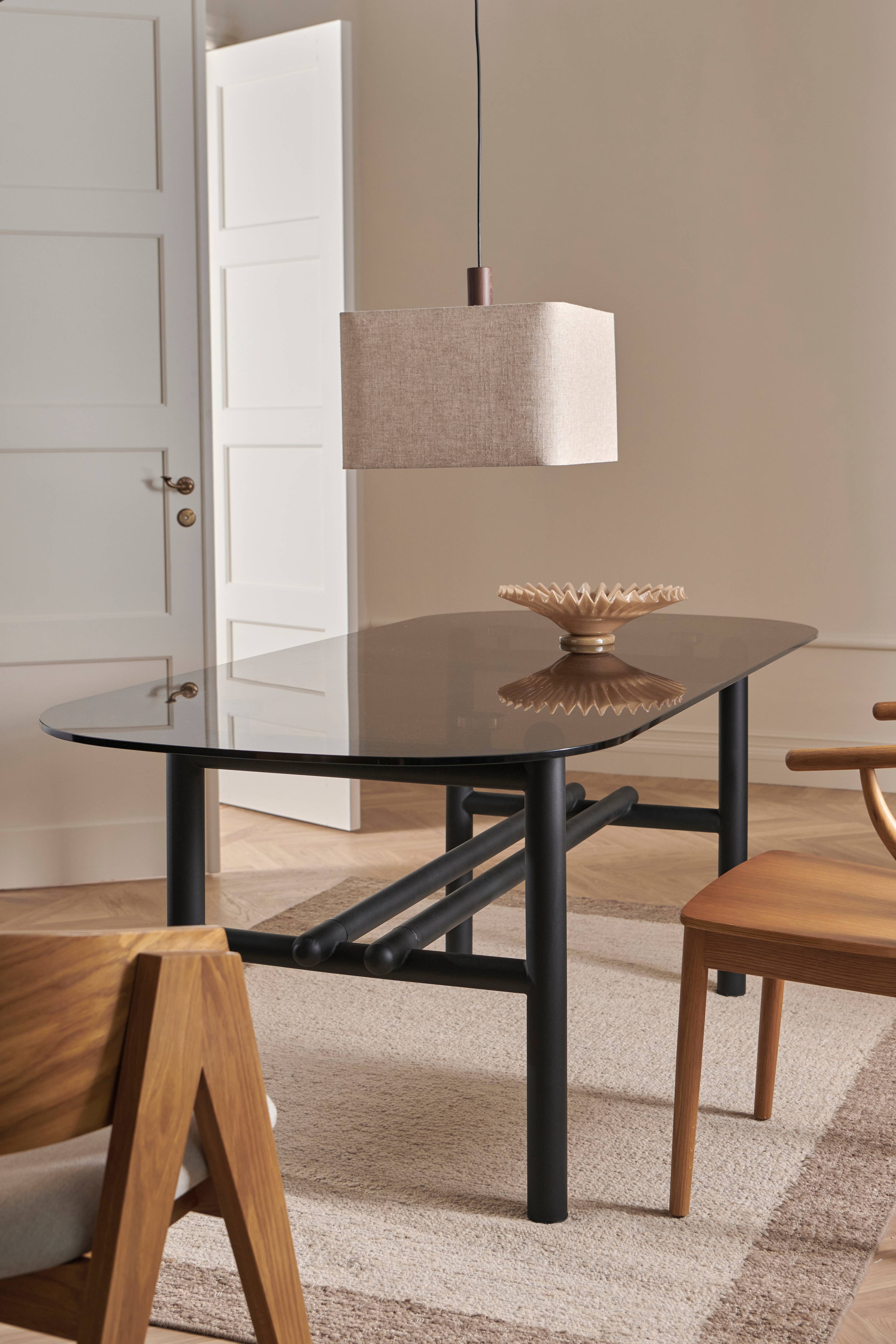 • Spisebord med afrundede former• Ben i pulverlakeret metal• Bordplade i hærdet glas• Topskivens tykkelse: 12 mm• Maks. vægt: 120 kg