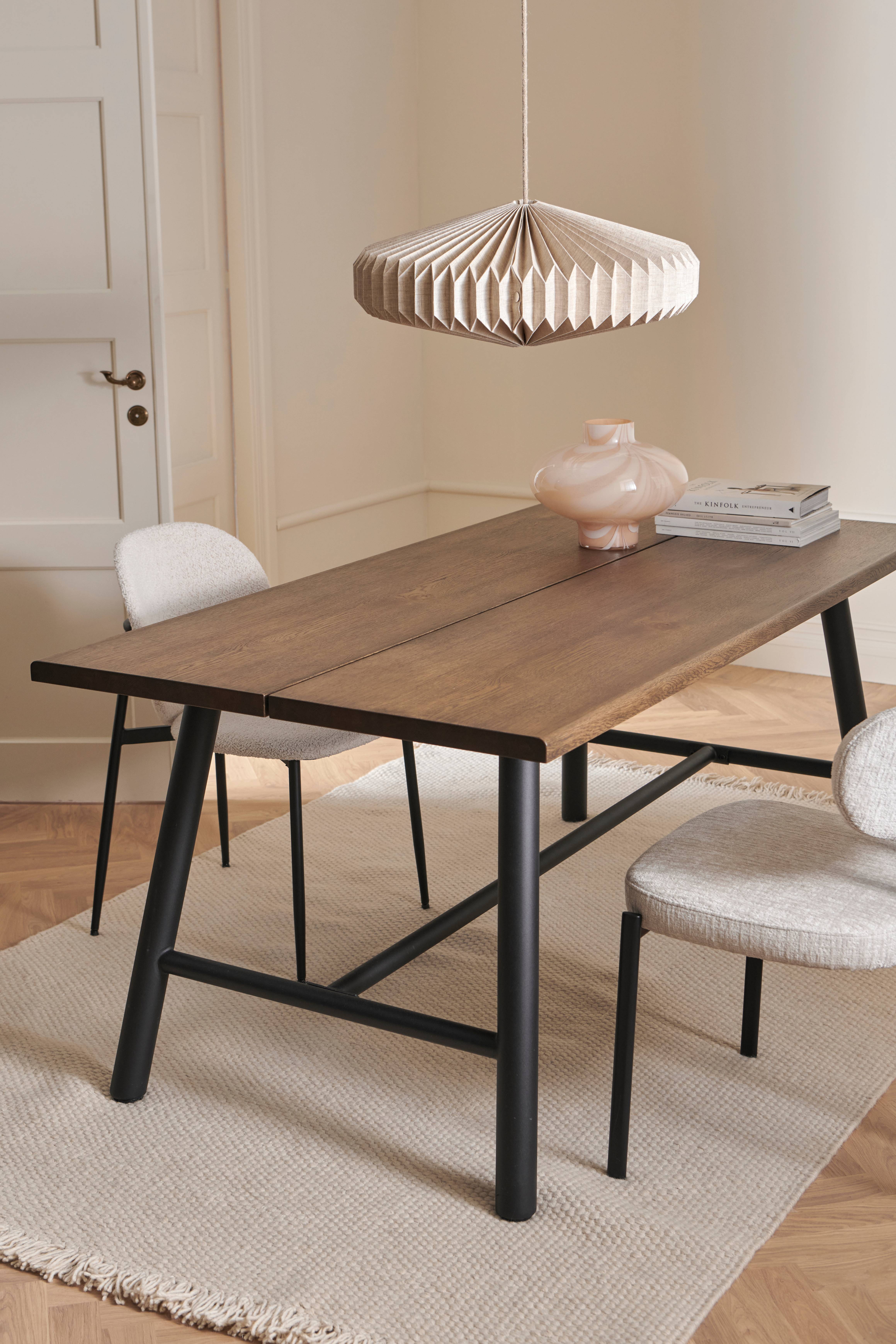 • Delt bordplade i egetræsfinér Massivt fyrretræ