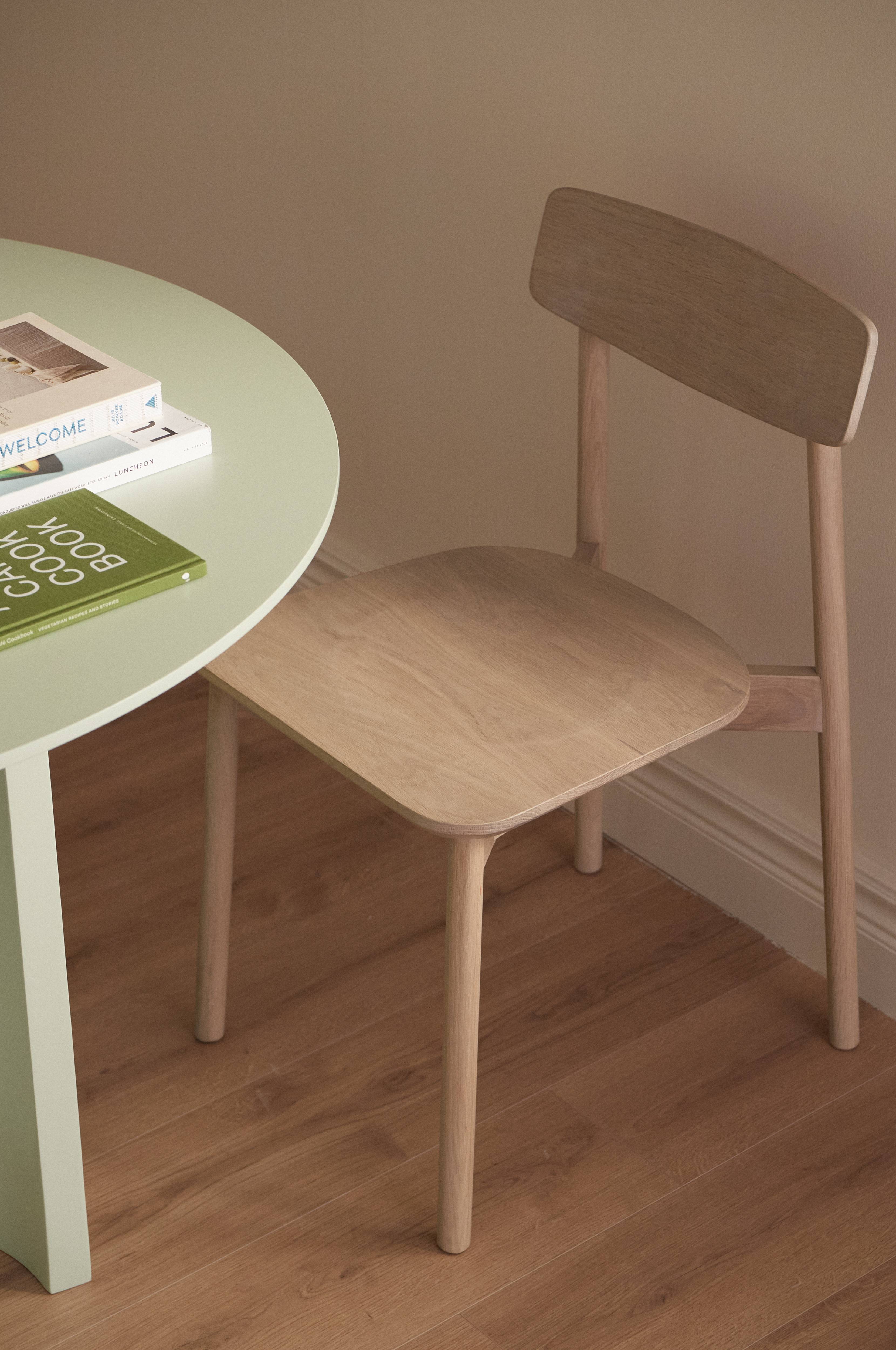 • To stole i massiv eg• Tidløst, skandinavisk design• Kuppet sæde• Sædebredde: 45 cm• Maks. vægt: 100 kg