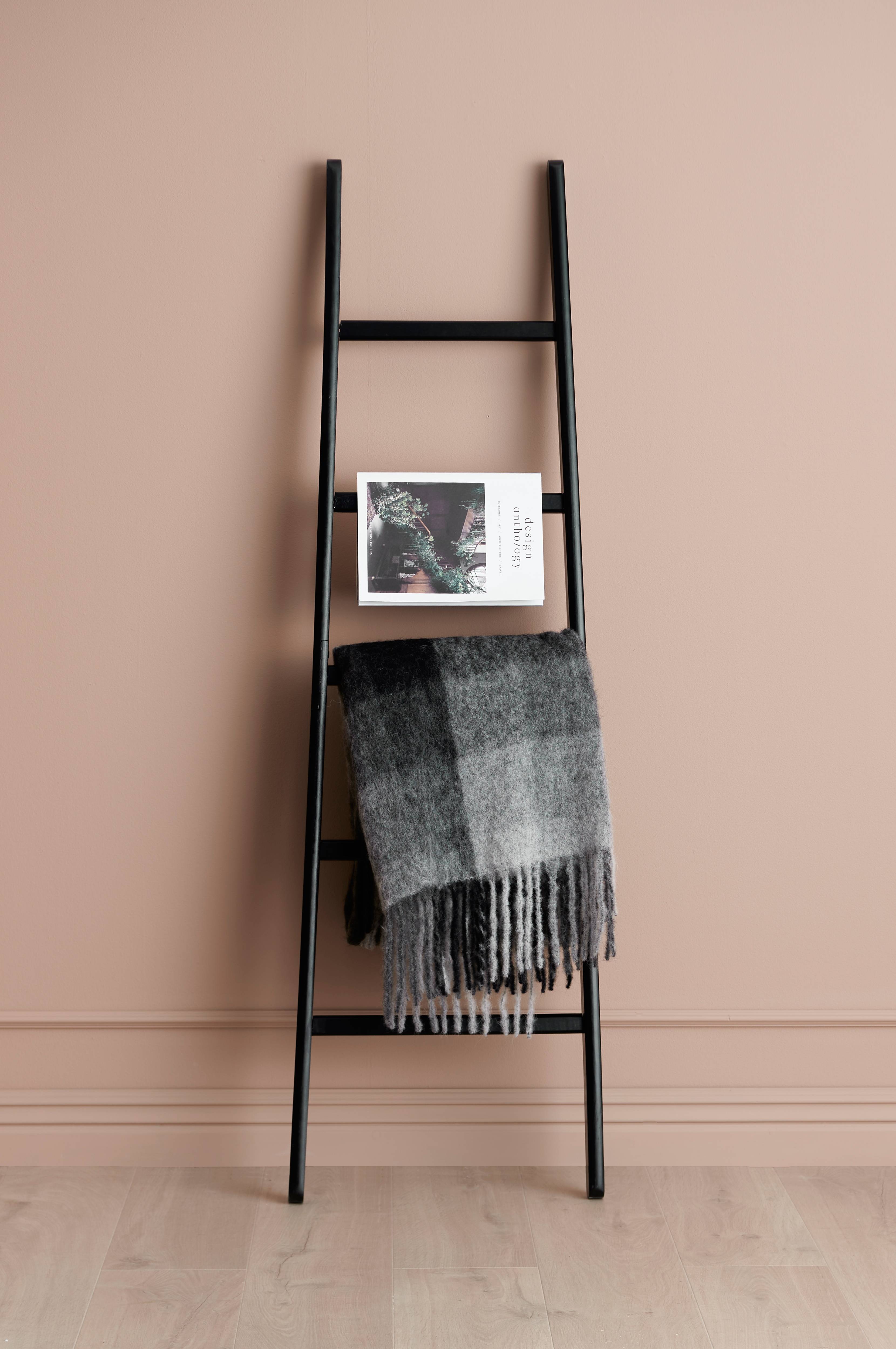 Beregnet som dekoration (stilles mod væggen). Af malet massivt træ. Højde 150 cm. Bredde 35 cm (foroven) resp. 44,5 cm (forneden).