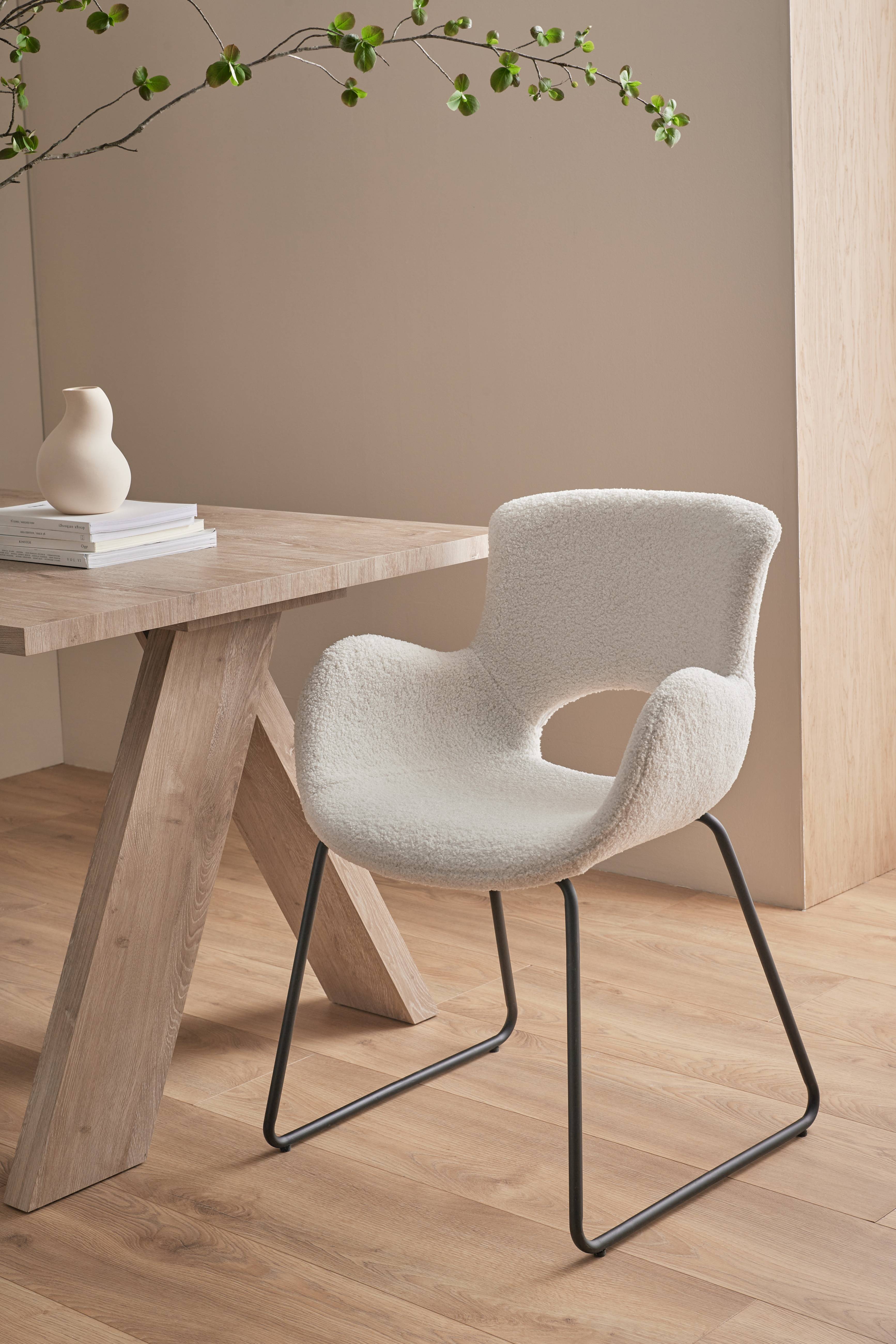 To stole med betræk i plys og stel i pulverlakeret metal. Skumfyld. Maks. belastning 130 kg. Ryglæn højde 37 cm. Højde til armlæn 65 cm.