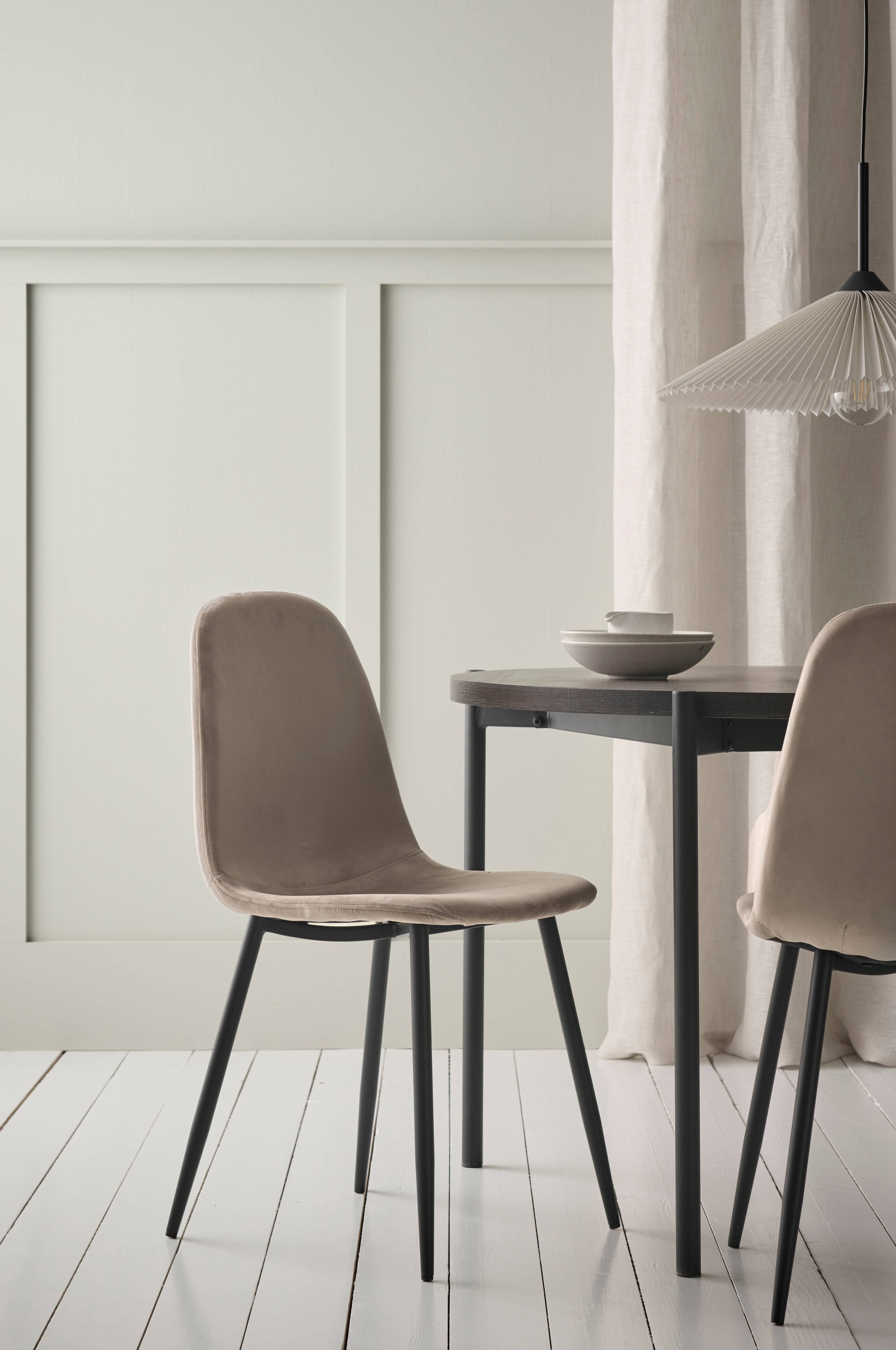 To stole med ben af pulverlakeret metal. Sæde med betræk i velour og skumpolstring. Lettere samling. Maks. belastning 120 kg.