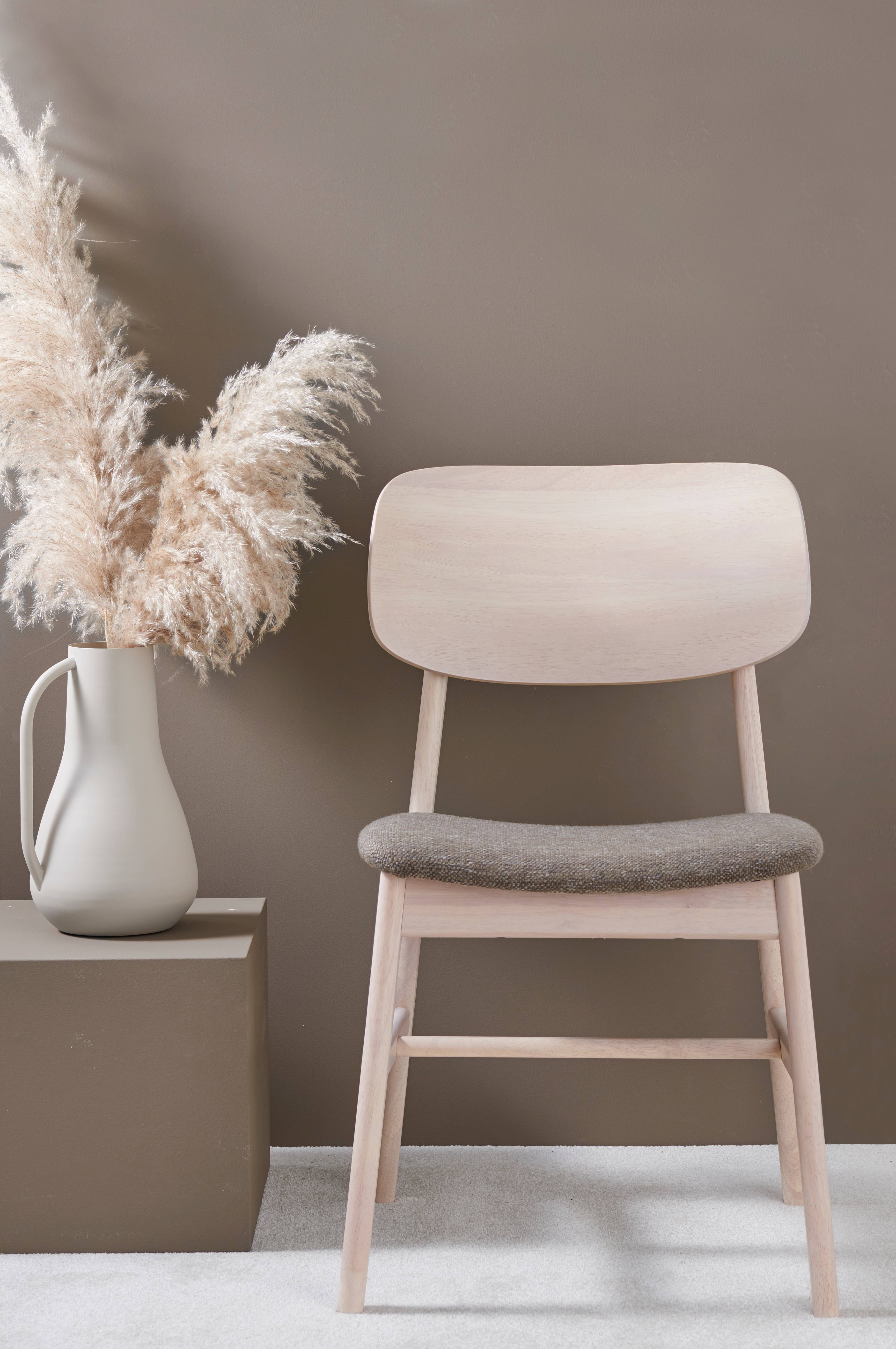 To stole i gedigent, stilrent og klassisk design med høj kvalitet. Ben og stel i massivt gummitræ. Sæde og ryglæn i plywood. Ryglænet er fineret, og sædet er betrukket med tekstil af polypropylen. Mål: Bredde 47 cm, højde 80 cm, dybde 54 cm. Siddedybde 41 cm, siddehøjde 46 cm. Leveres usamlede.