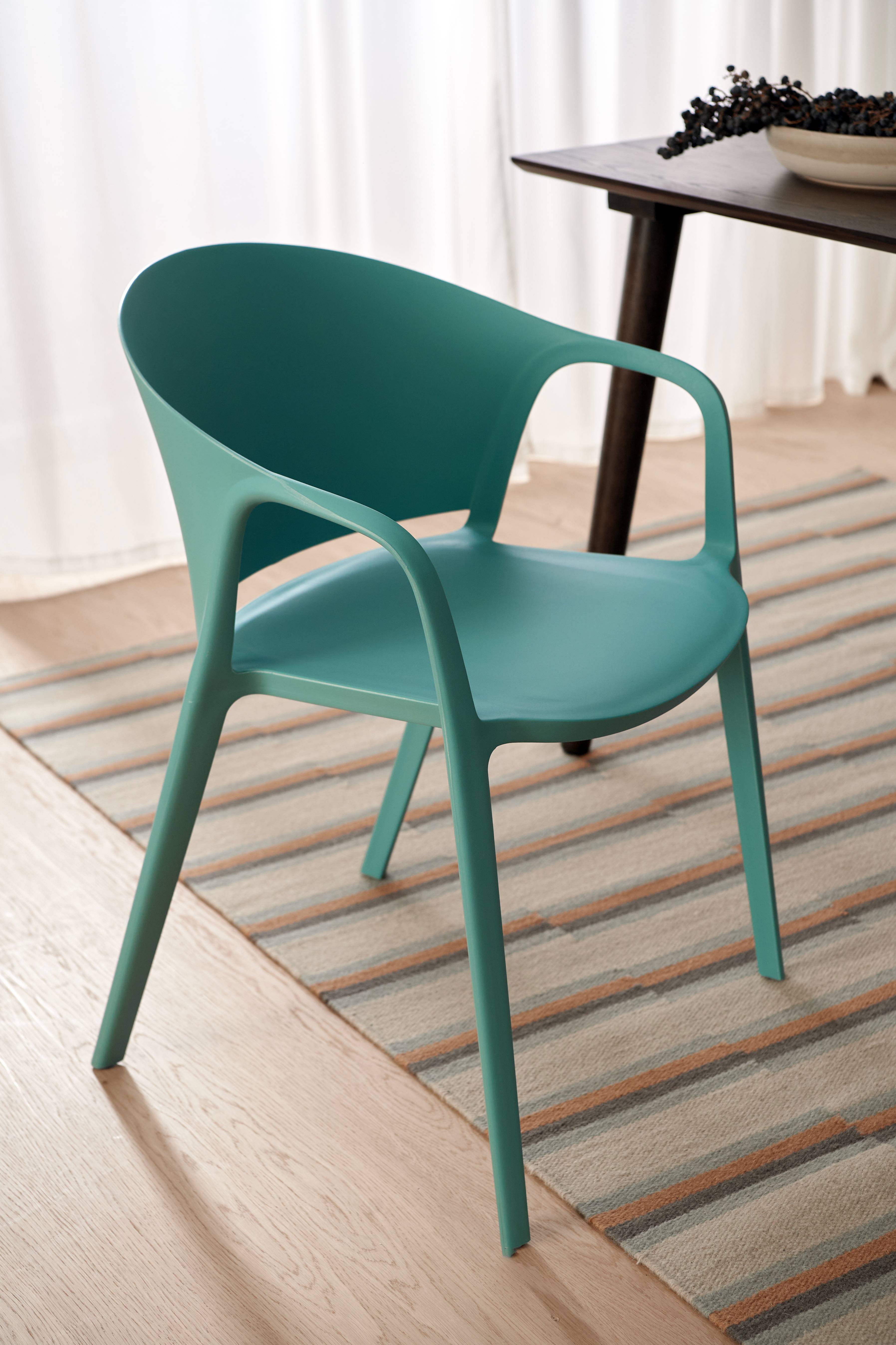 To stole med armlæn i PP-plast med afrundet form. Kan bruges både indendørs og udendørs.