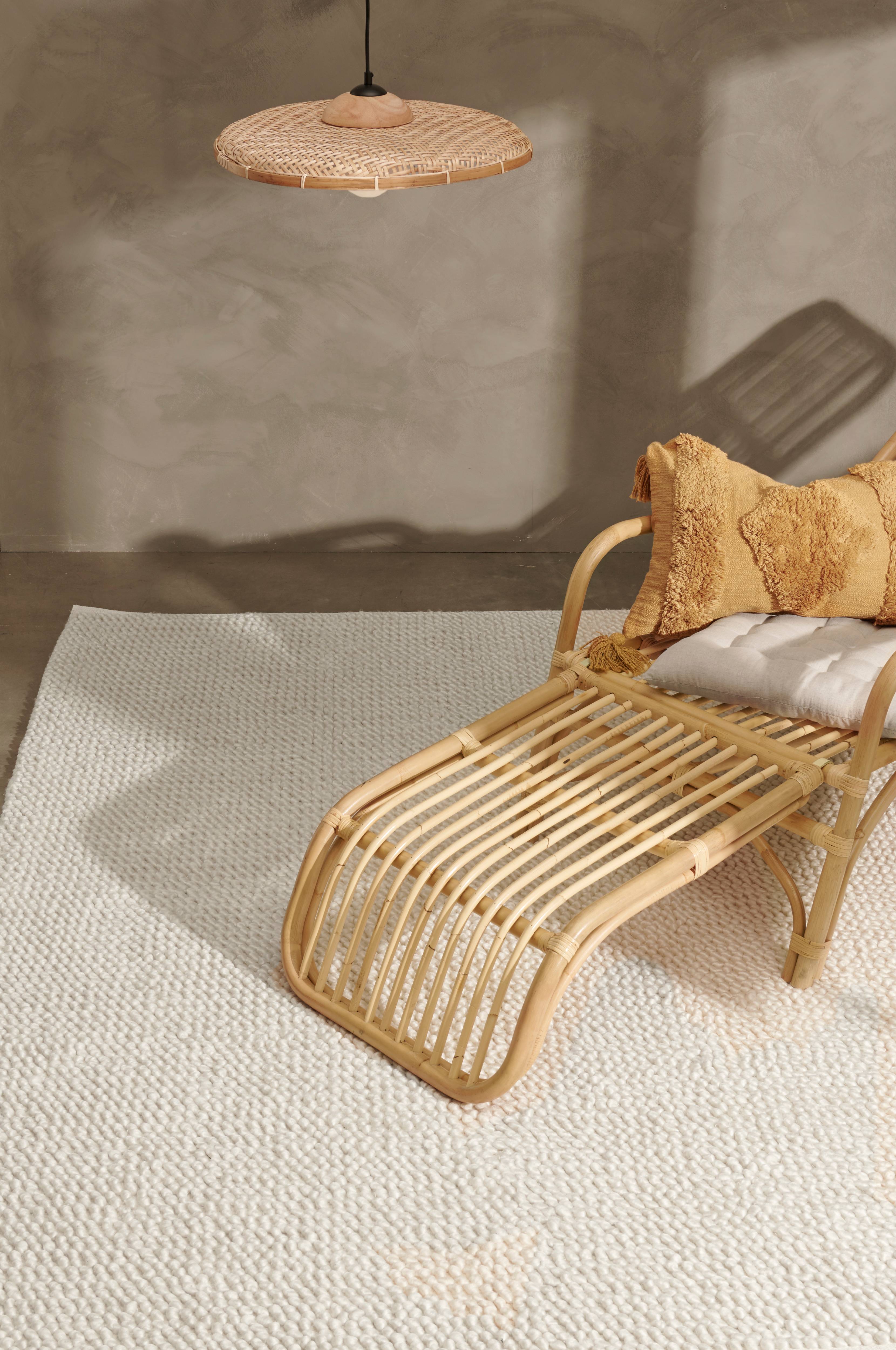 Vandafvisende tæppe med uld-touch og flot uldstruktur, perfekt til f.eks. udestuen eller køkkenet. Tæppet er delvist fremstillet af polyester som er genindvundet fra gamle PET-flasker.