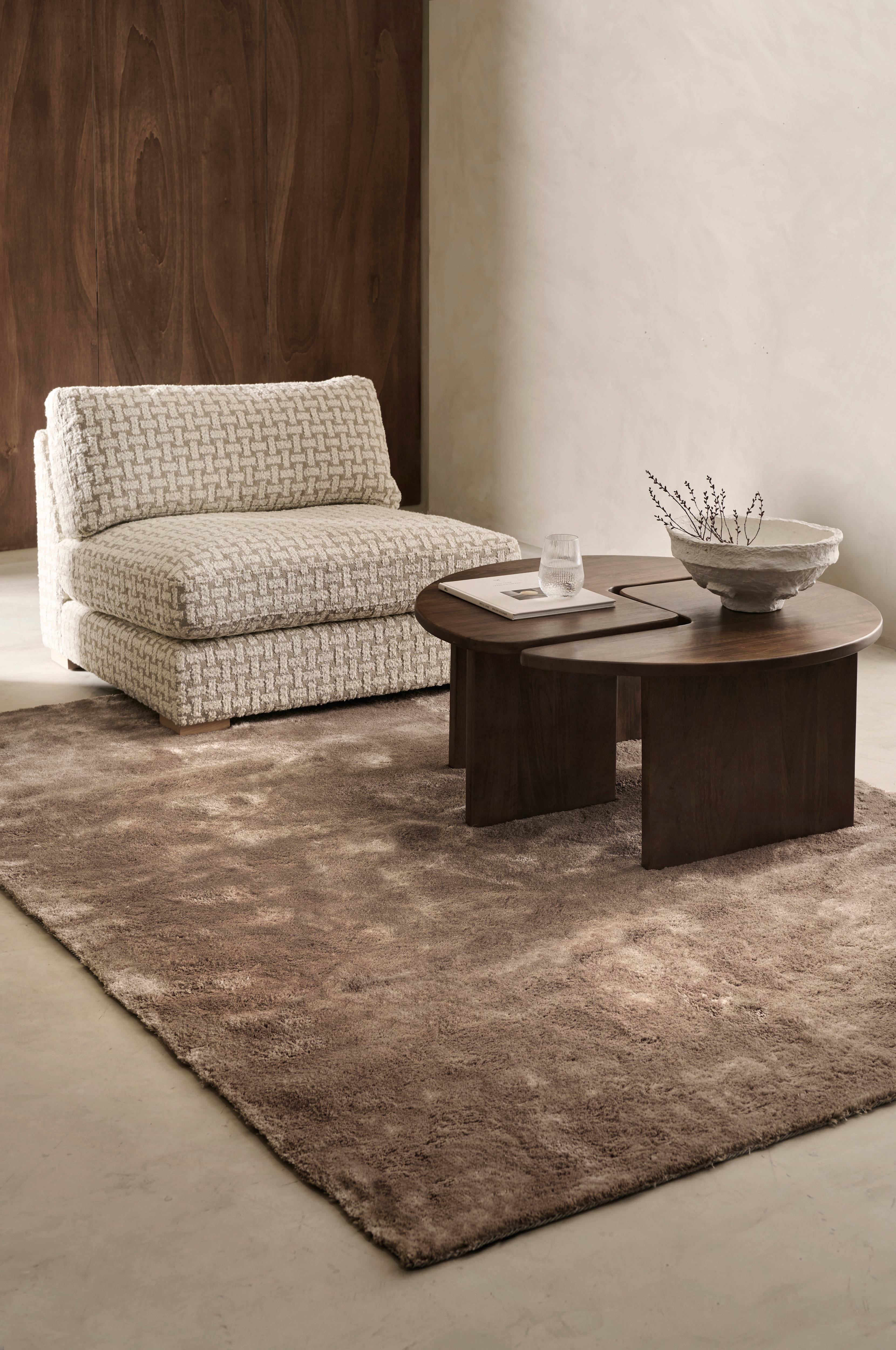 Tuftet tæppe i blød kvalitet med skinnende glans. Tykkelse 2 cm.