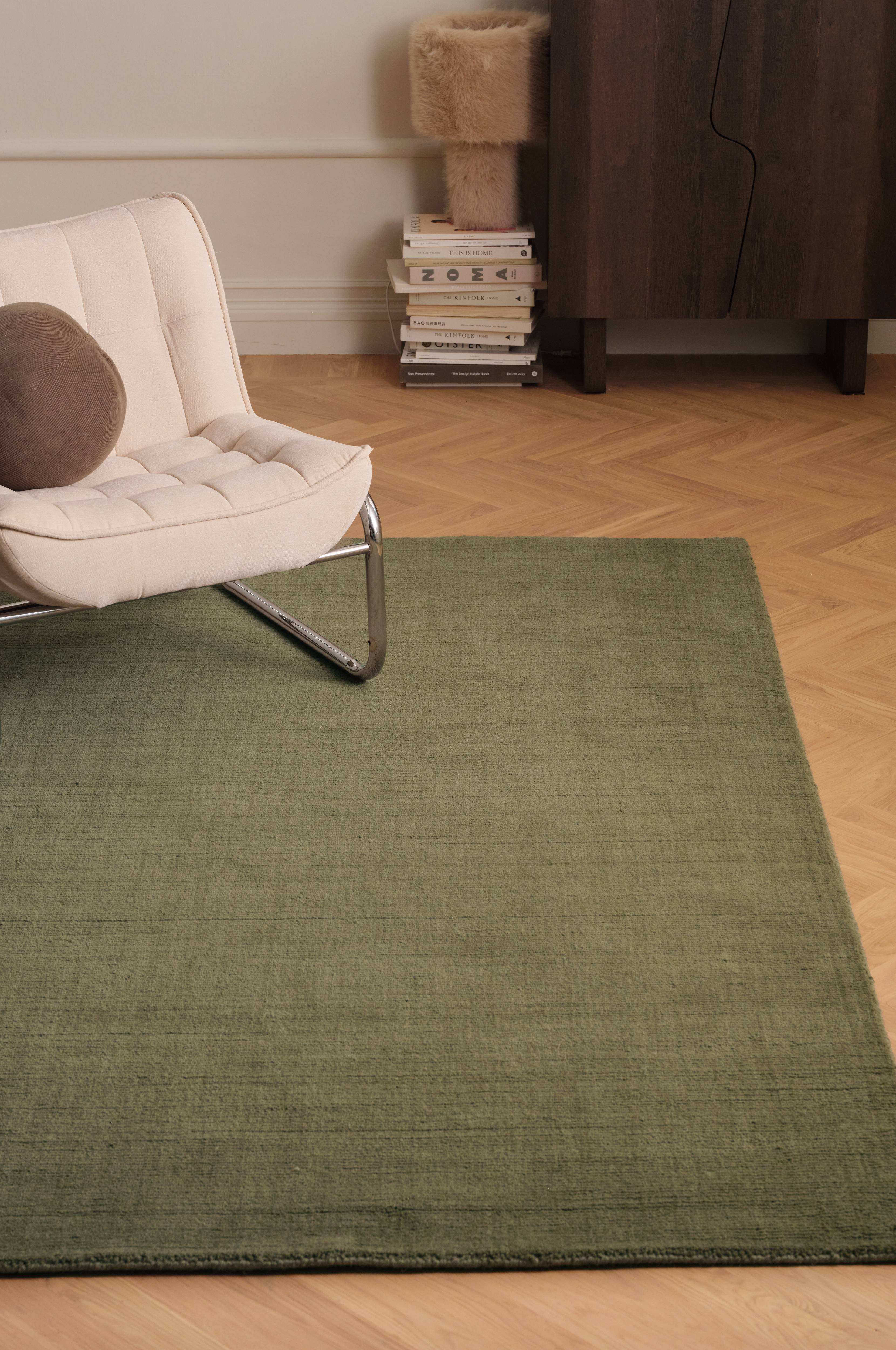 Det bedste tæppe er et uldtæppe, farven er harmonisk grøn, den eneste ulempe: der kommer virkelig meget fnuller af, når man støvsuger