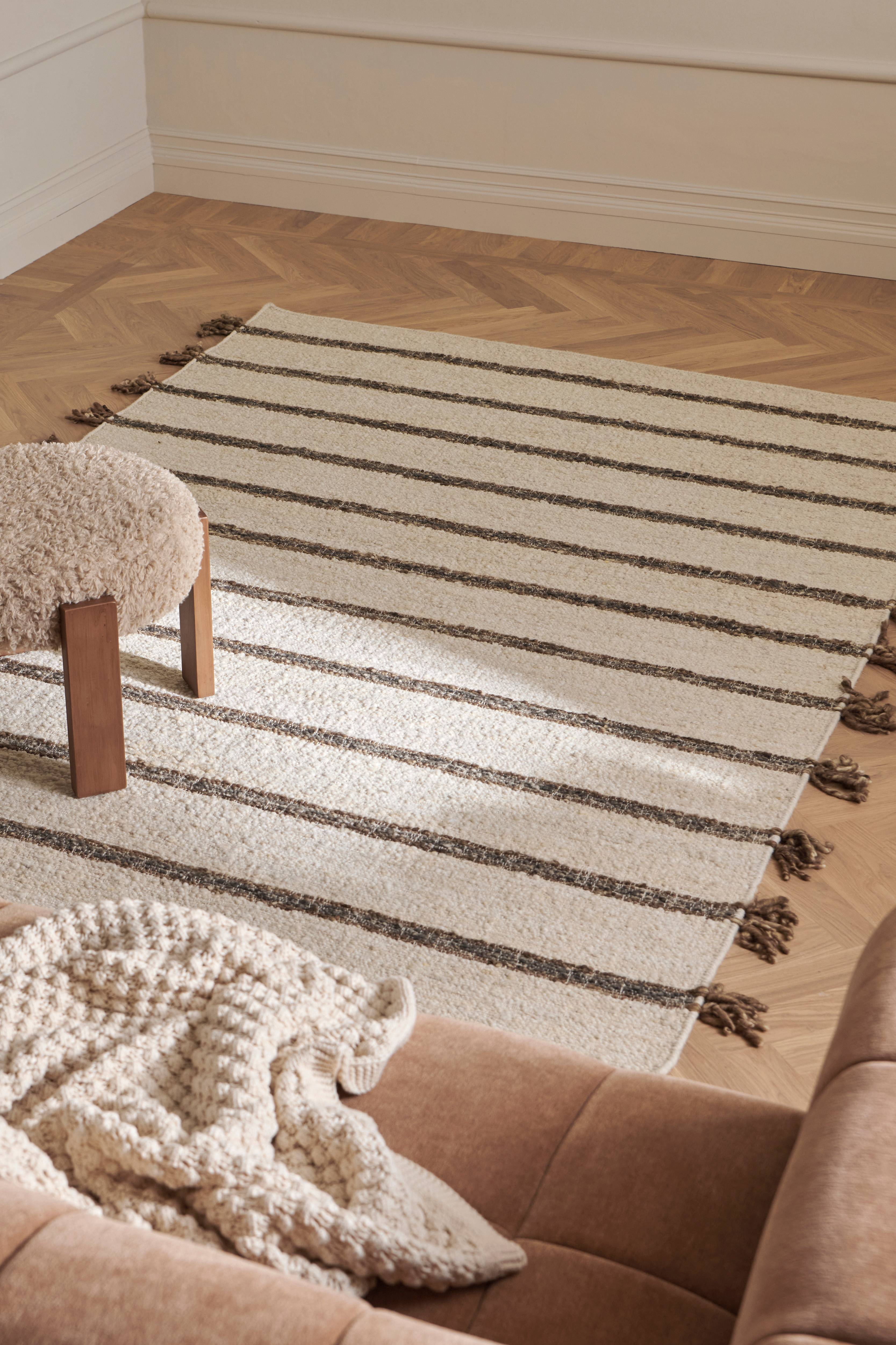 • Håndvævet uldgulvtæppe i håndspundet garn • Kvaster på langsiderne • Kvastens længde: 8 cm • Indien har en lang historie med håndvævede, smukke tæpper. Vores uldtæpper er vævede af dygtige indiske tæppemagere med en lang tradition for væveteknik og håndværk. • For øget sikkerhed og komfort kan du bruge en skridsikker måtte, der holder tæppet på plads. Vi har skridsikre måtter i flere størrelser. • Plejevejledning: Støvsug regelmæssigt med et mundstykke uden børste. Uldtæpper er naturligt smudsafvisende takket være uldens fedtstoffer. Snavs lægger sig på overfladen og vil blive støvsuget op eller blæst væk. Mindre pletter kan vaskes med en fugtig klud med lunkent vand. Indsend til professionel rengøring.