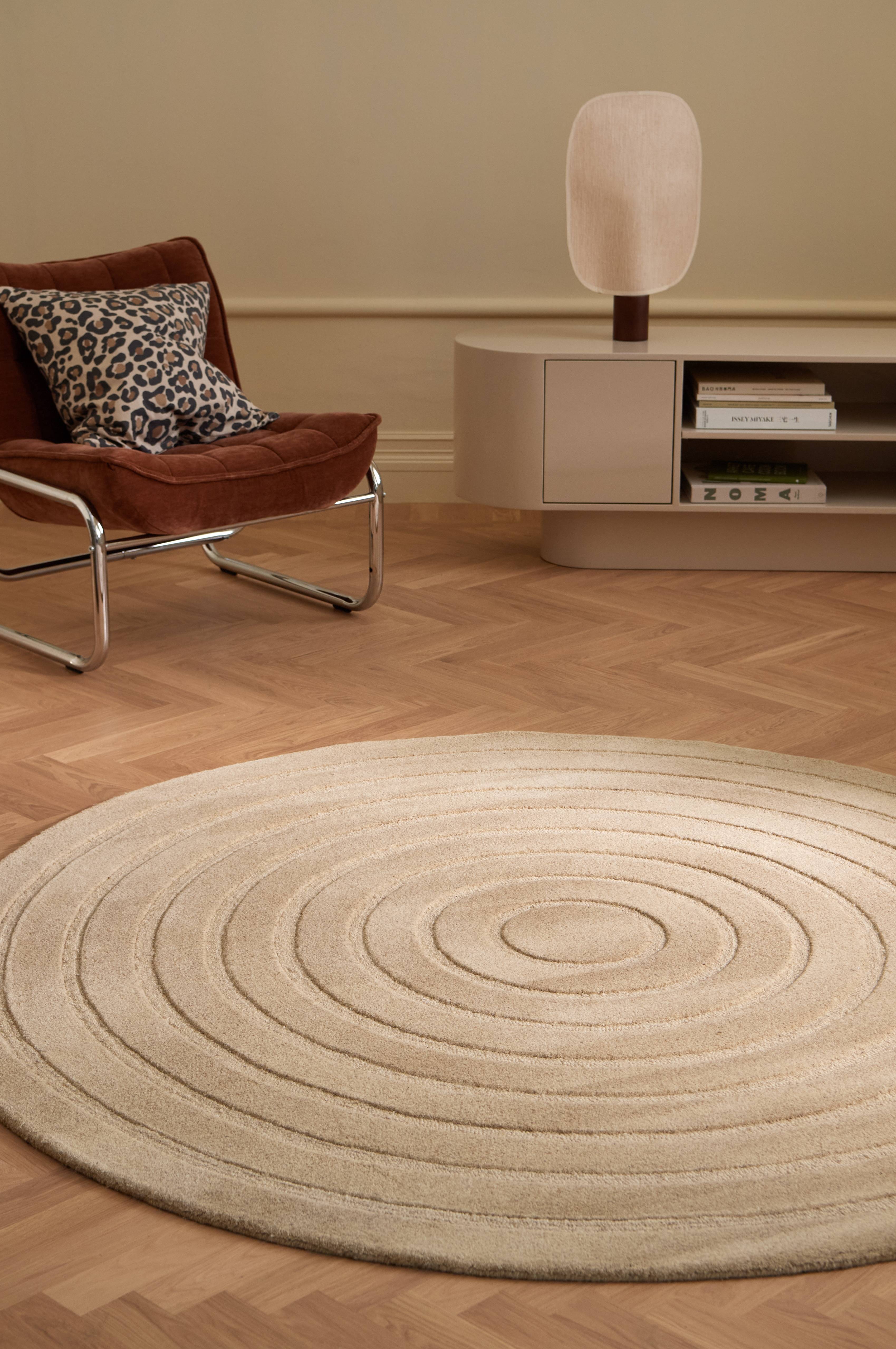 • Rundt uldgulvtæppe med tuftet mønster • Tykkelse: 1,5 cm • For øget sikkerhed og komfort kan du bruge en skridsikker måtte, der holder tæppet på plads. Vi har skridsikre måtter i flere størrelser.
