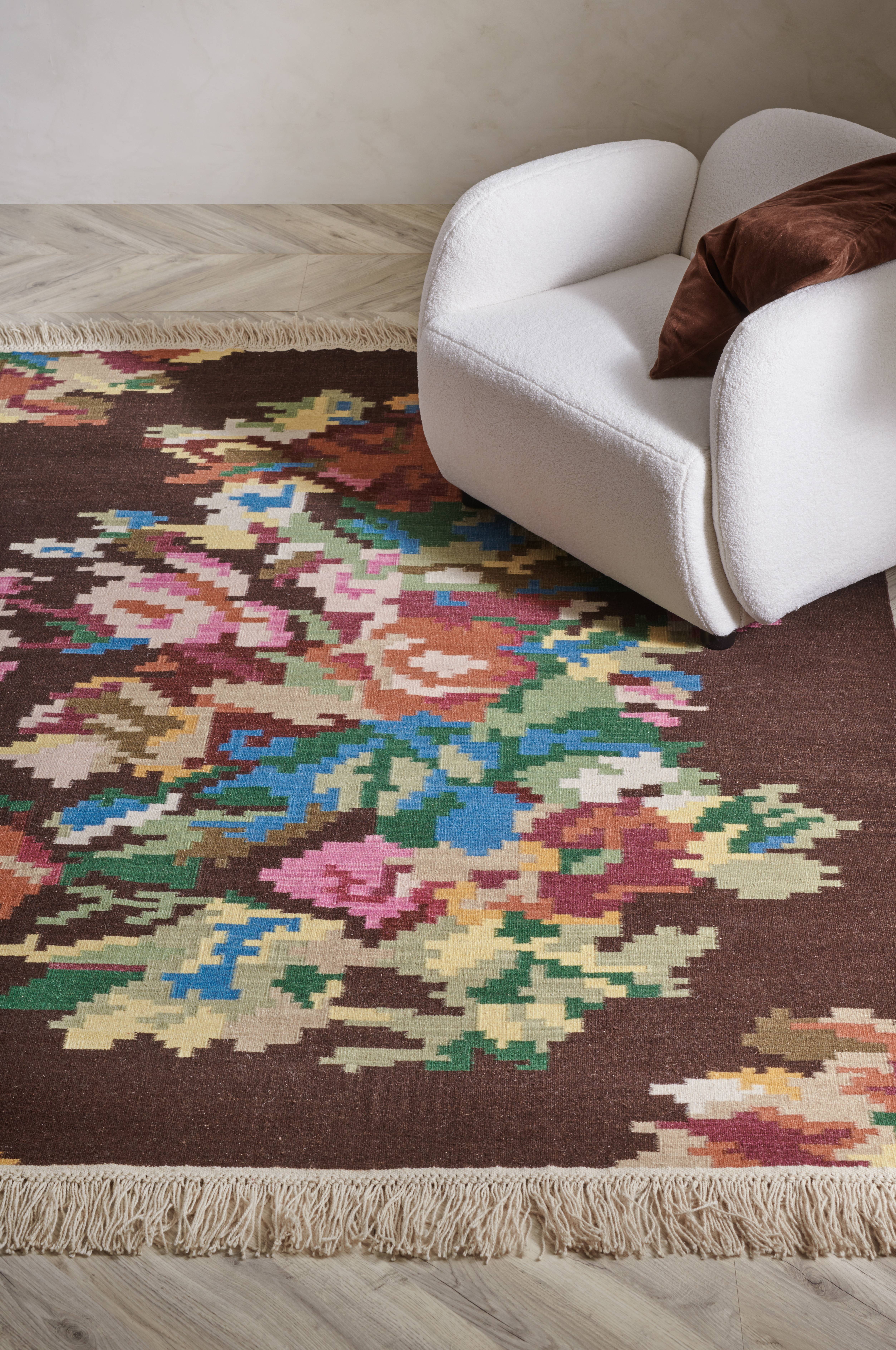• Håndvævet og smukt mønstret kelimtæppe af uld • Tynd, tætvævet kvalitet • Frynser på de korte sider • For øget sikkerhed og komfort, brug et skridsikkert tæppeunderlag, som holder tæppet på plads. Du finder skridsikre tæppeunderlag i forskellige størrelser hos Ellos. • Vaskeanvisning: Støvsugning og pletfjerning