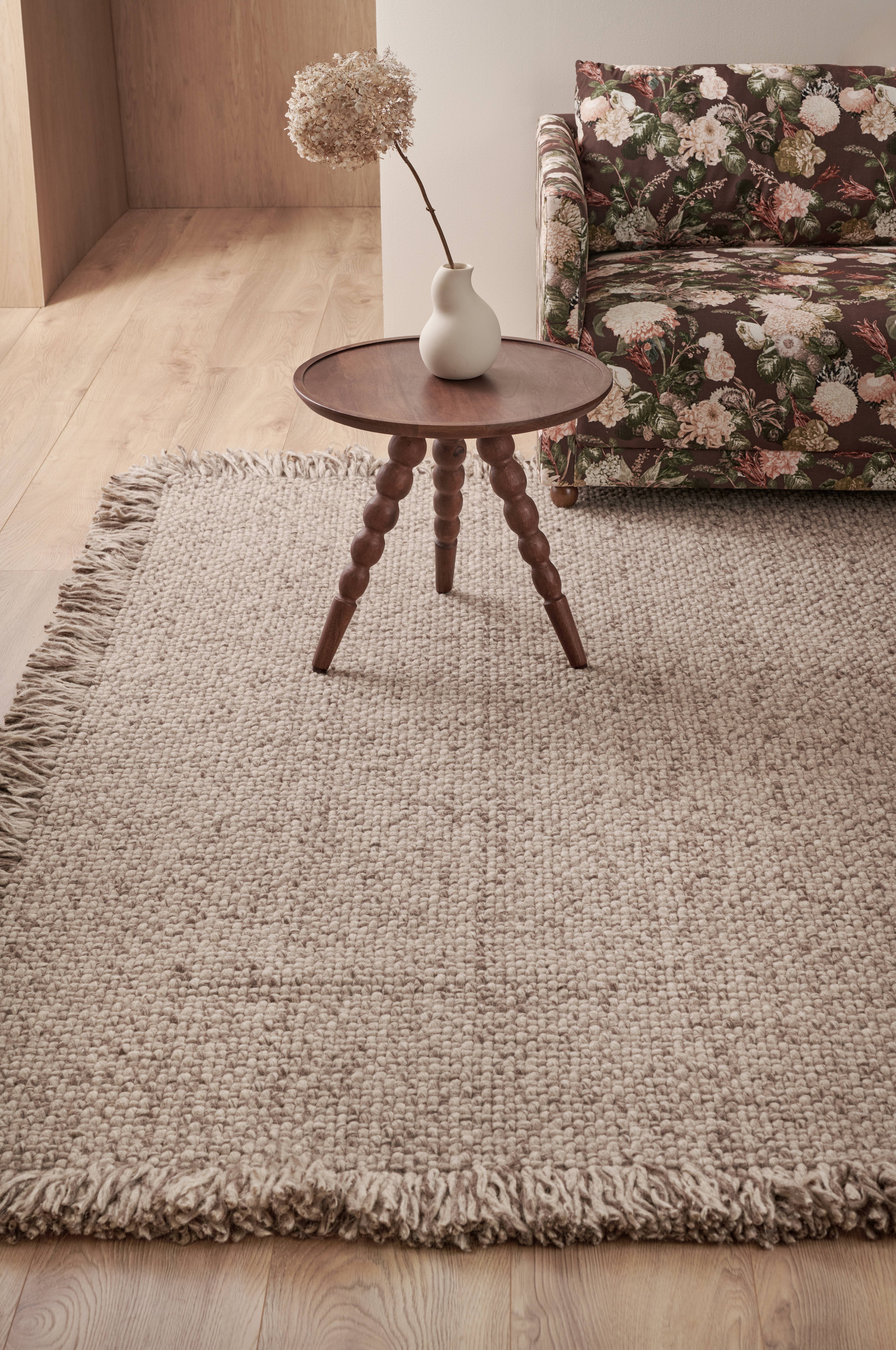 • Håndvævet uldgulvtæppe med klassisk, flettet mønster