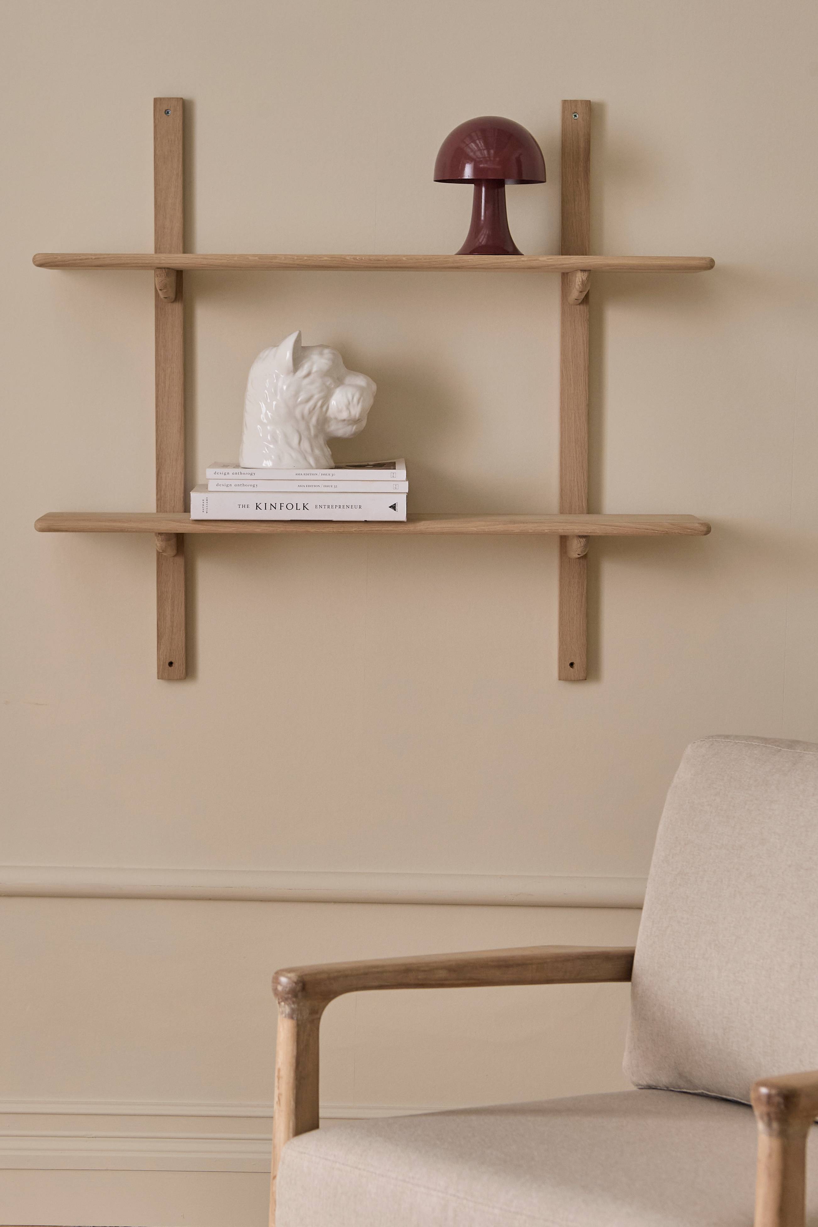• Væghylde i massivt egetræ med sæbebehandlet afslutning
