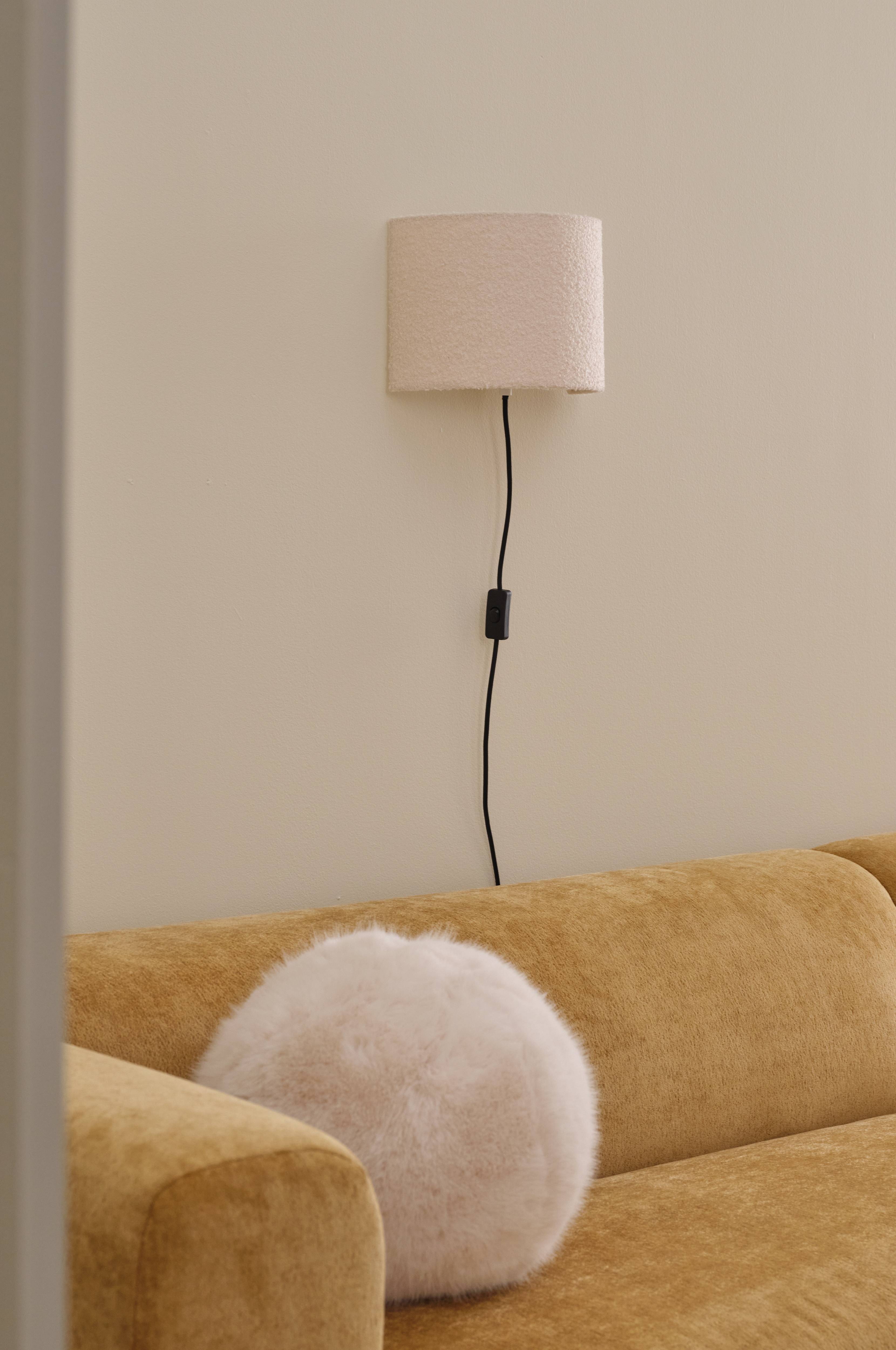 • Væglampe med skærm i Bouclé-stof• Tekstilsnor med kontakt• Lampeholder og vægbeslag i hvidfarvet stål• Lyskilde medfølger ikke