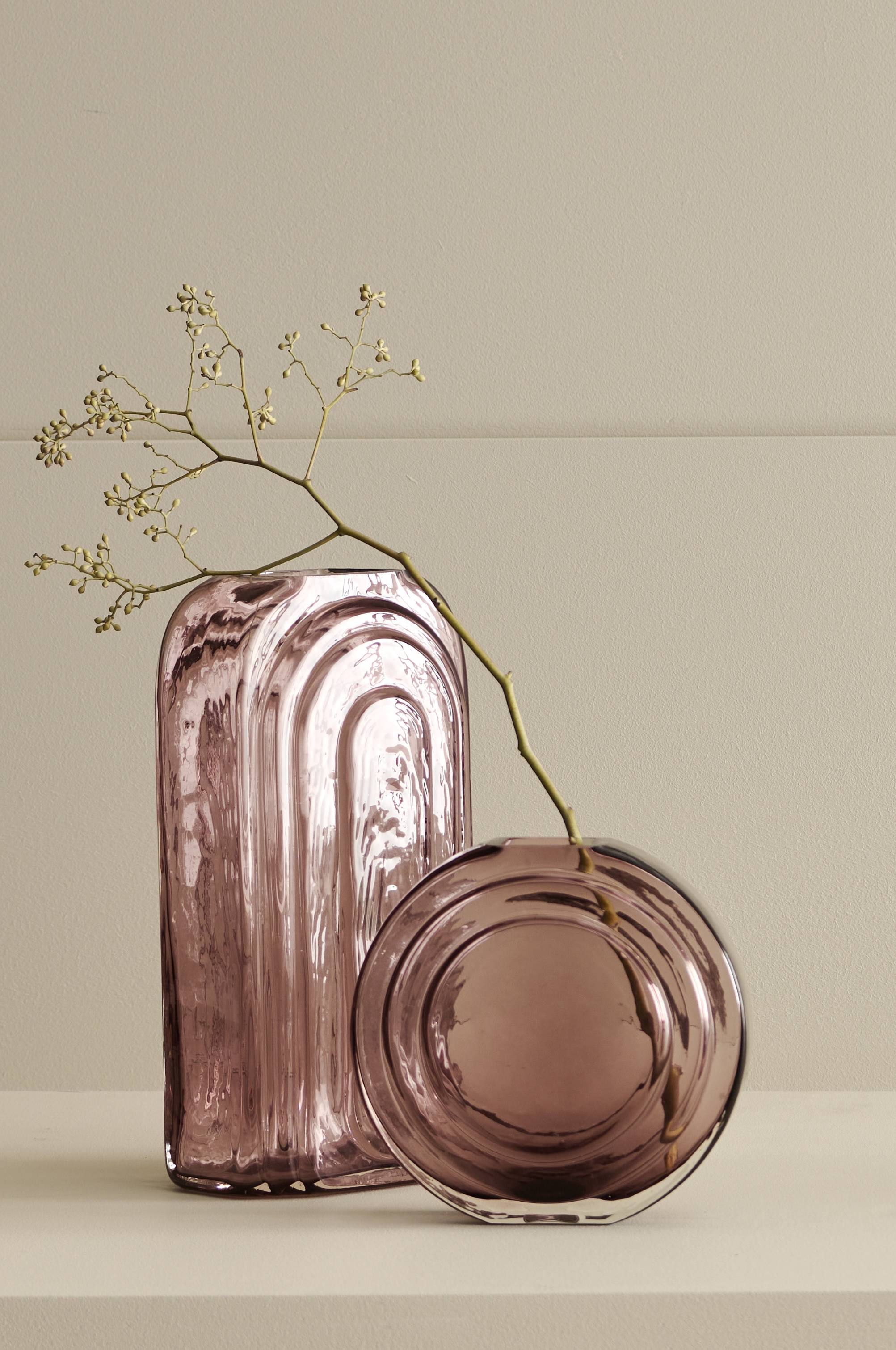 • Rund, håndlavet vase i glas• Strukturmønster