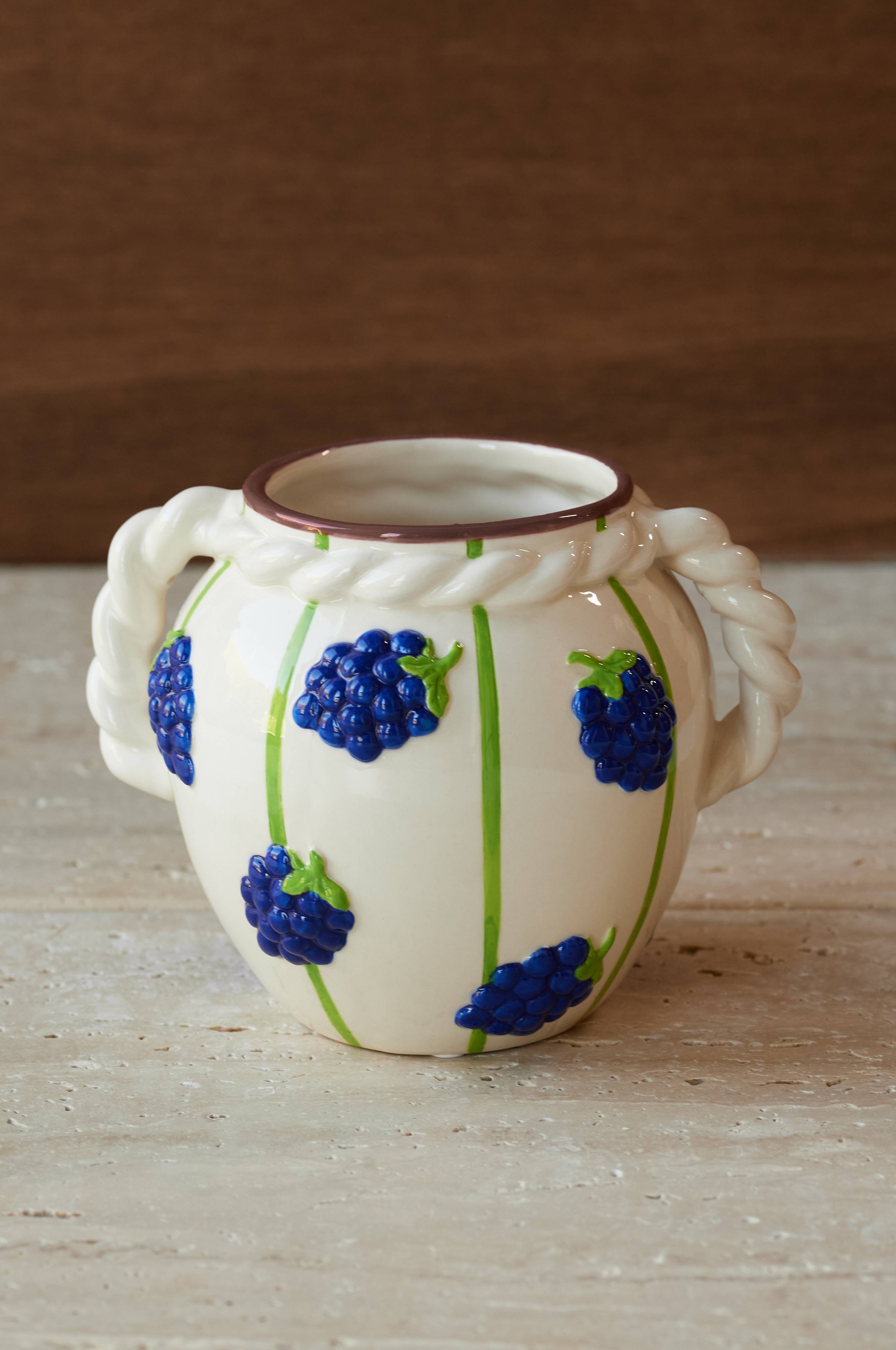 • Dekoreret vase i porcelæn med reb-lignendet håndtag• Diameter åbning (indvendig diameter): 8,5 cm