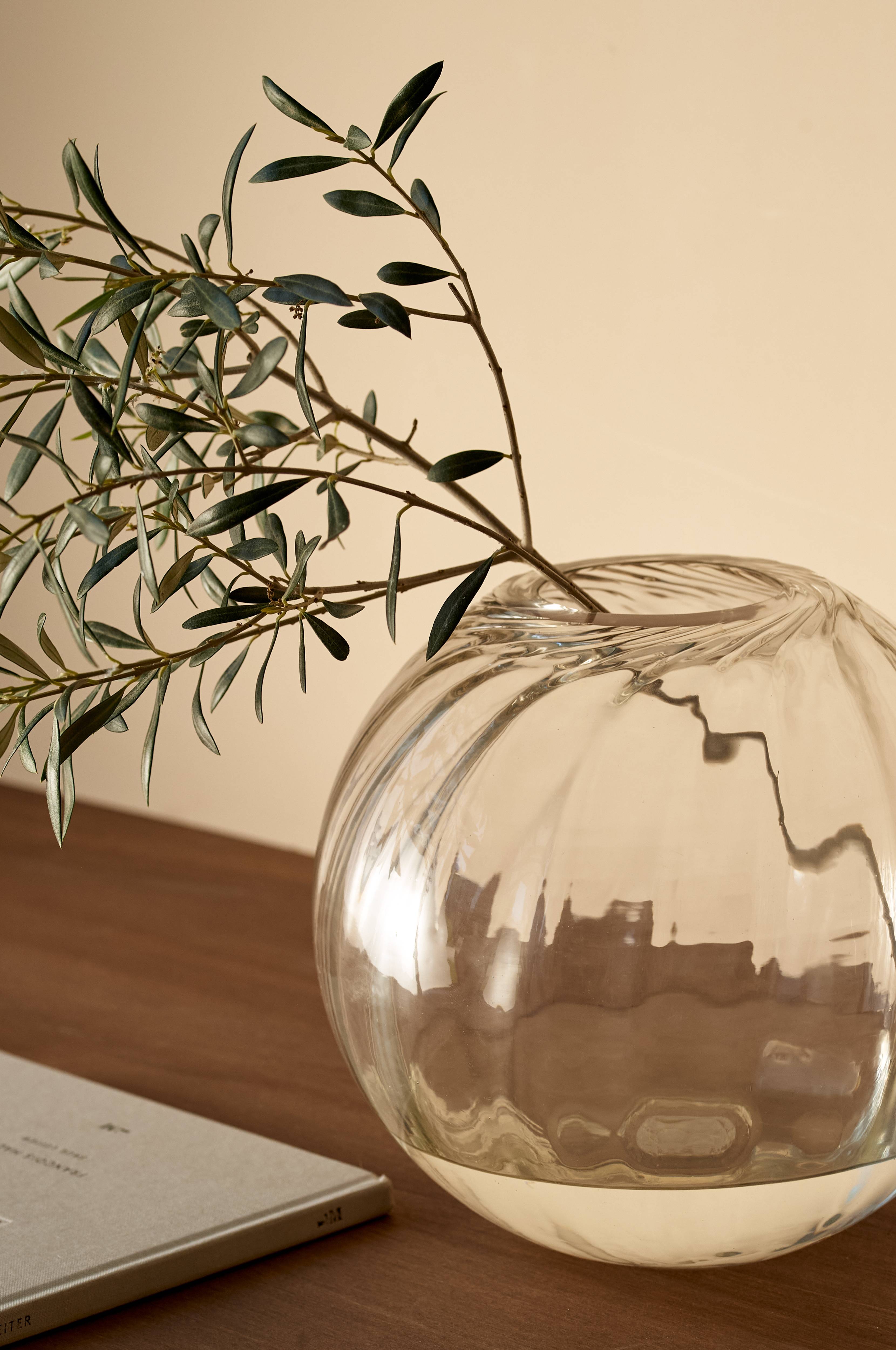 • Håndlavet, rund vase i mundblæst glas• Diameter åbning (indvendig diameter): 9 cm• Vasen er håndlavet, hvilket betyder, at der kan forekomme små variationer i størrelse, mønster og finish i forhold til billedet.