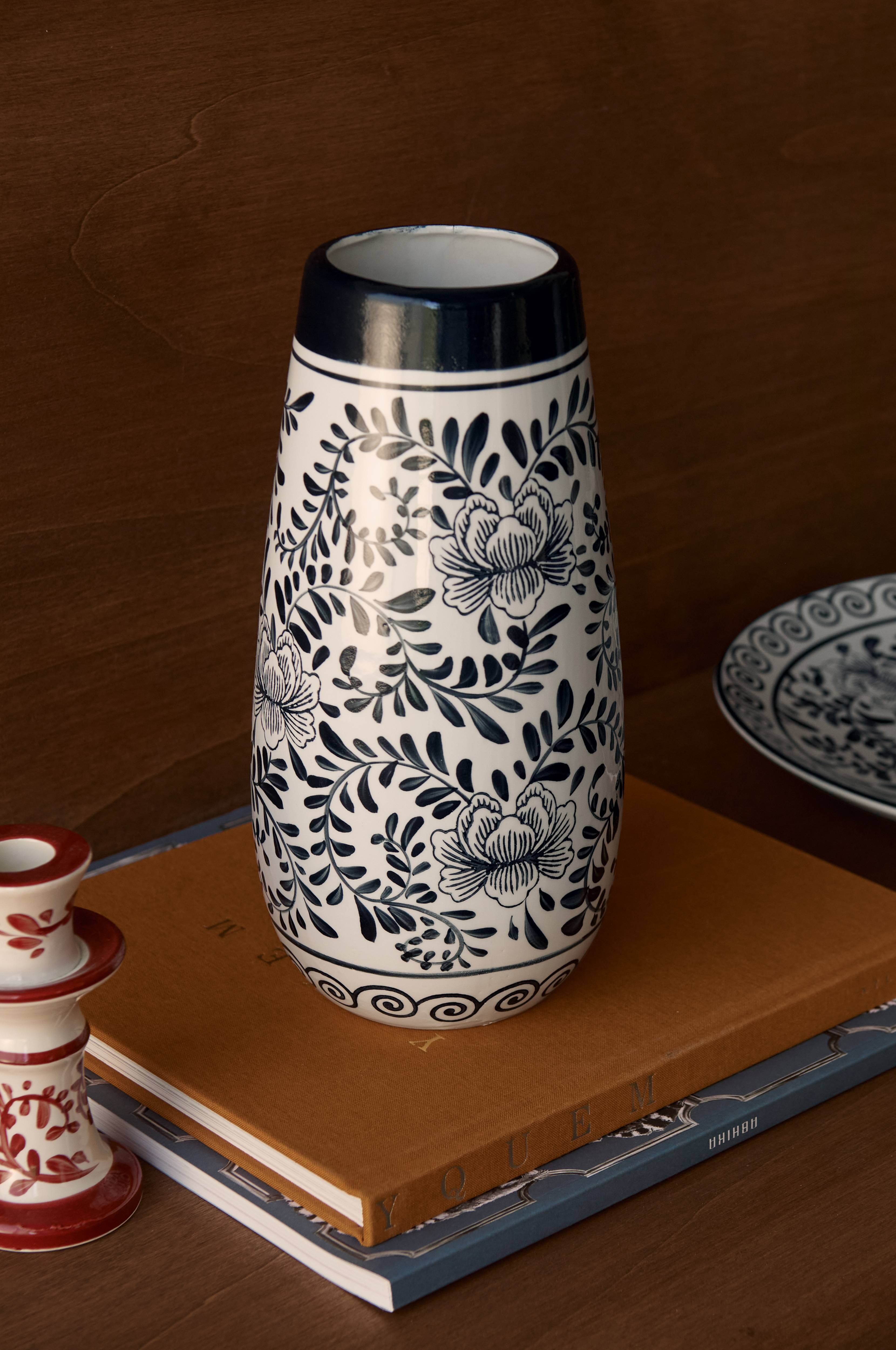 • Vase i stentøj med et dekorativt mønster• Diameter 12,5 cm• Diameter åbning (indvendig diameter): 7 cm