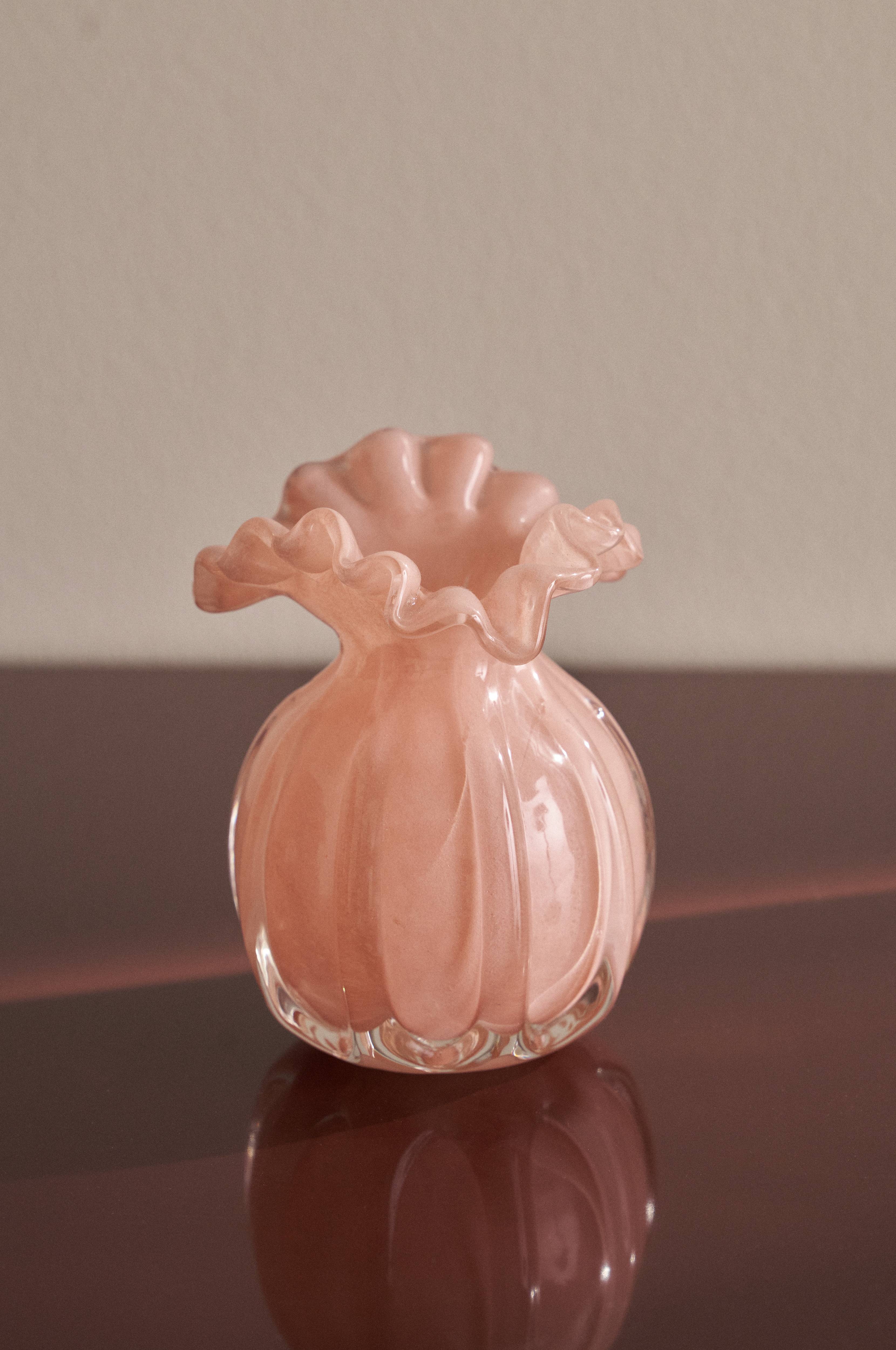 • Vase i håndlavet glas• Dekorativ form med bølget kant på toppen