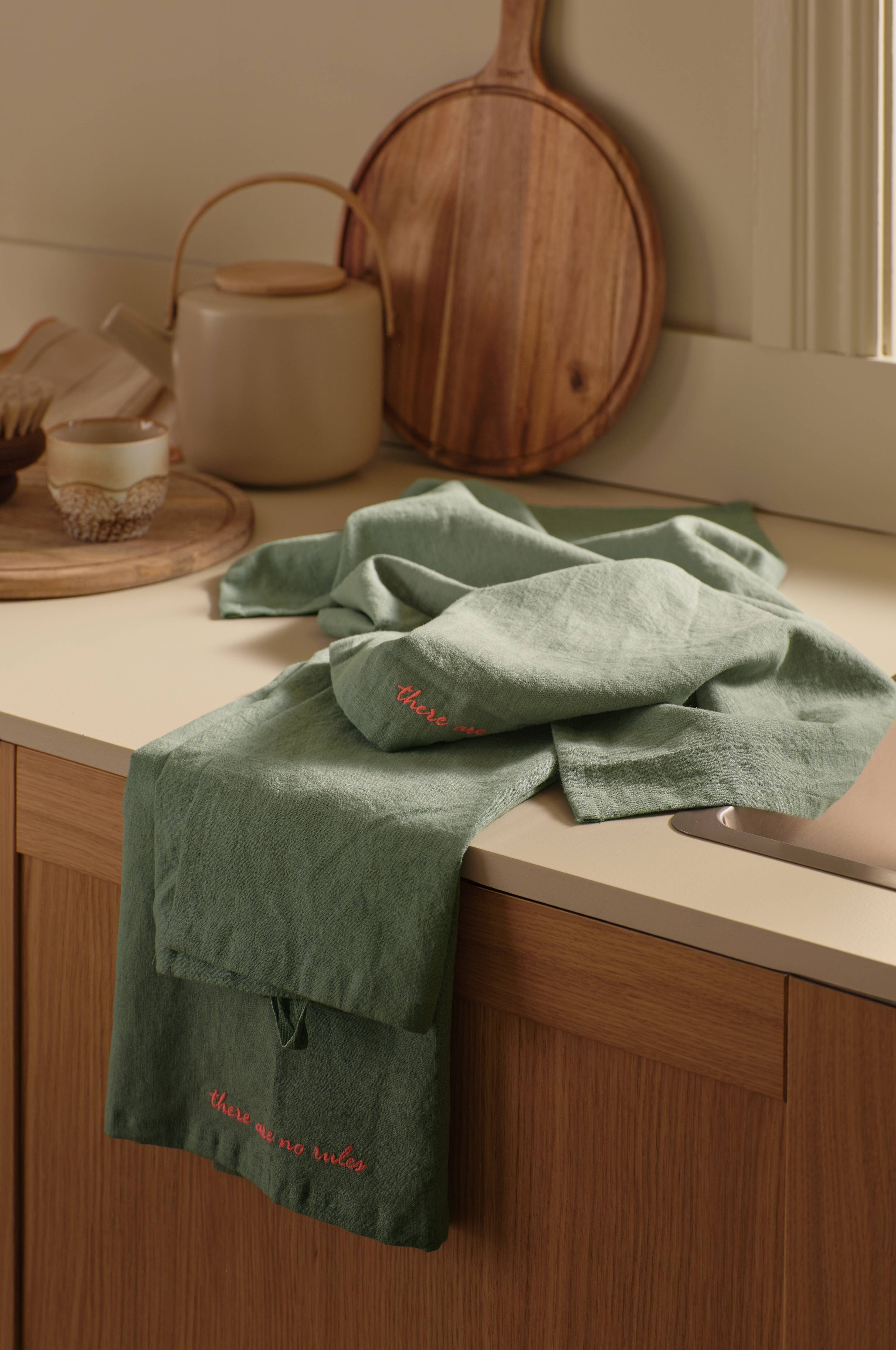 • To ensfarvede viskestykker i bomuld og hør med blød, vasket afslutning