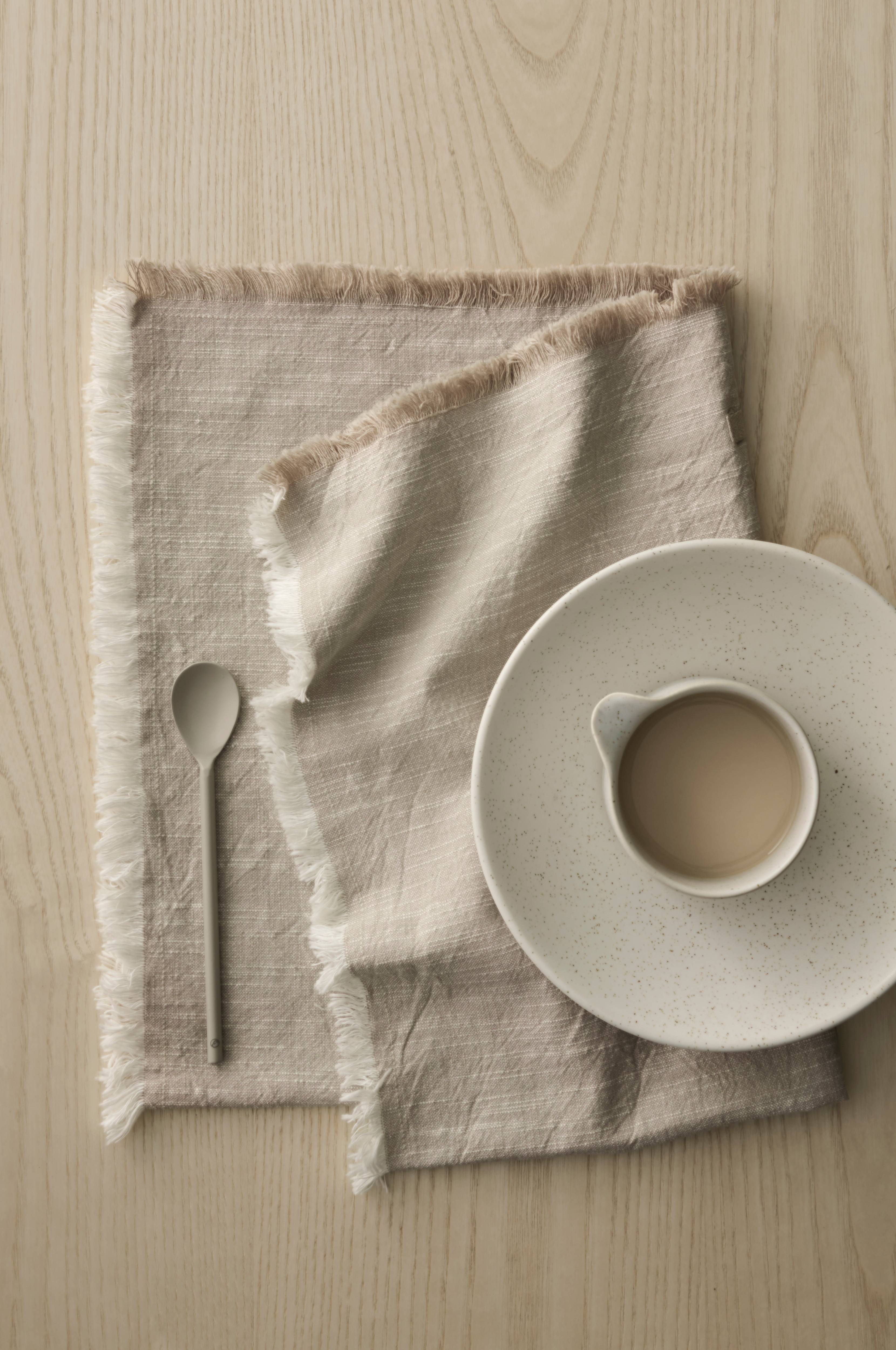 Viskestykke i vævet, økologisk bomuld med meleret farve og slubeffekt, hvilket betyder at stoffet har en let struktur. Frynser på 3 sider.