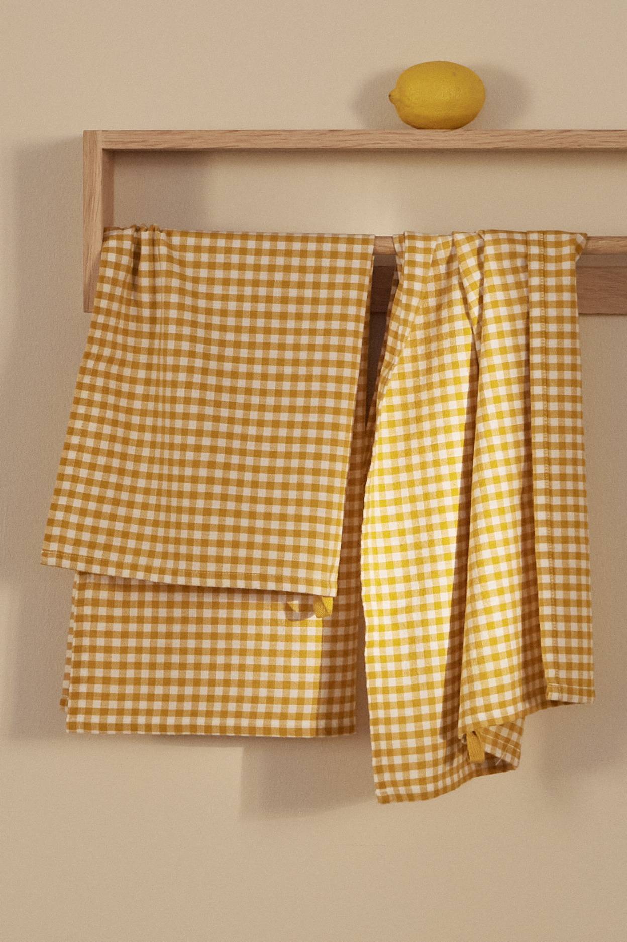 • To viskestykker i bomuld med garnfarvede kvadrater