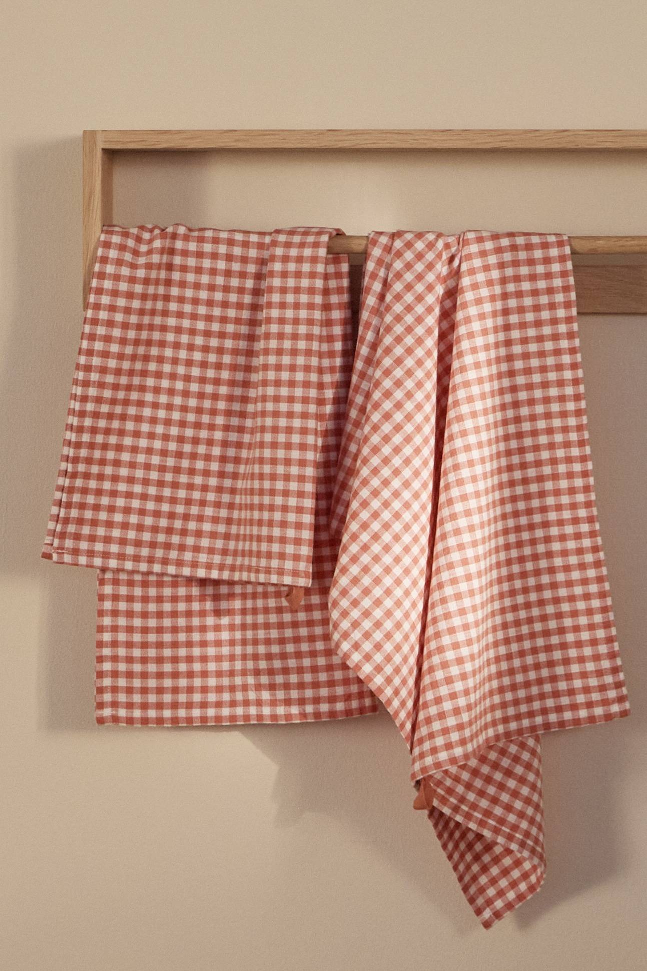 • To viskestykker i bomuld med garnfarvede kvadrater