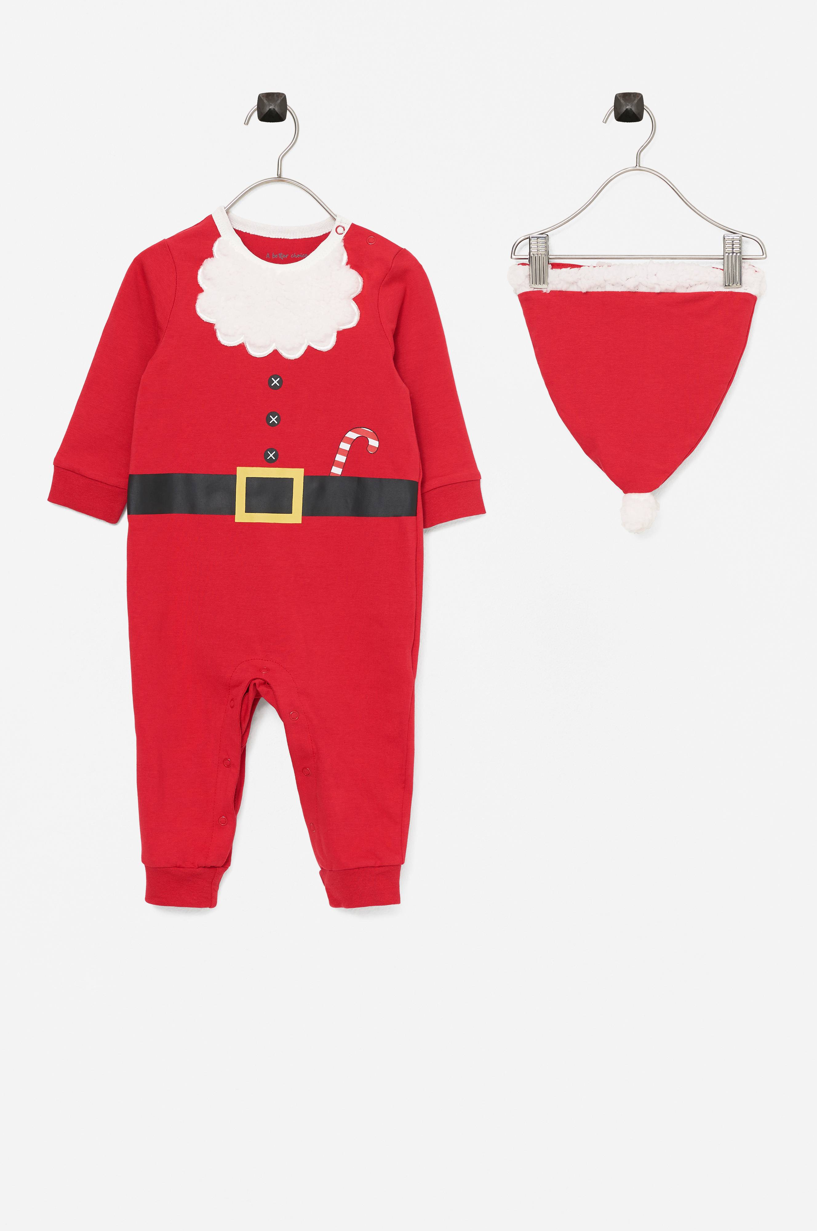 Babypyjamas i blød stretchjersey af økologisk bomuld med print foran. En hue medfølger. Rib i ærmekant og forneden.