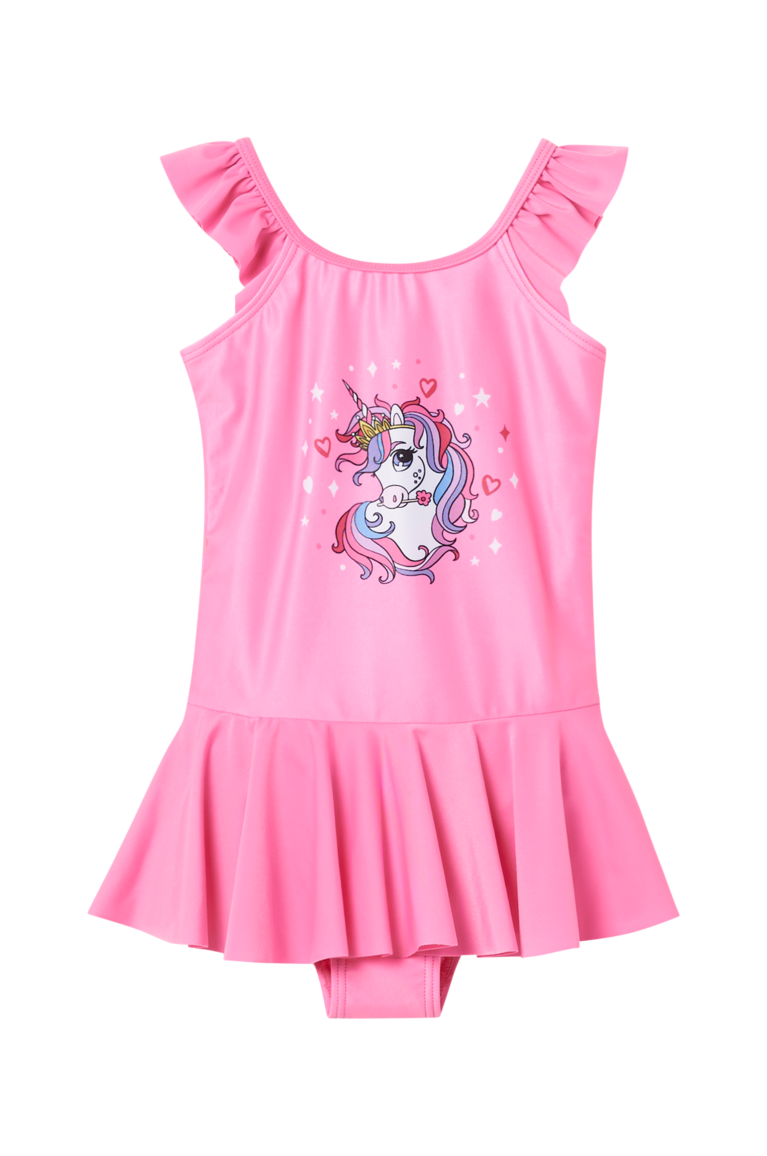 • Badedragt med nederdel • Tryk foran • Skulderstropper med volanter • Foret • Produktet indeholder genindvundet materiale, som genbruges for at reducere mængden af affald samtidigt med at der ikke anvendes nye ressourcer.