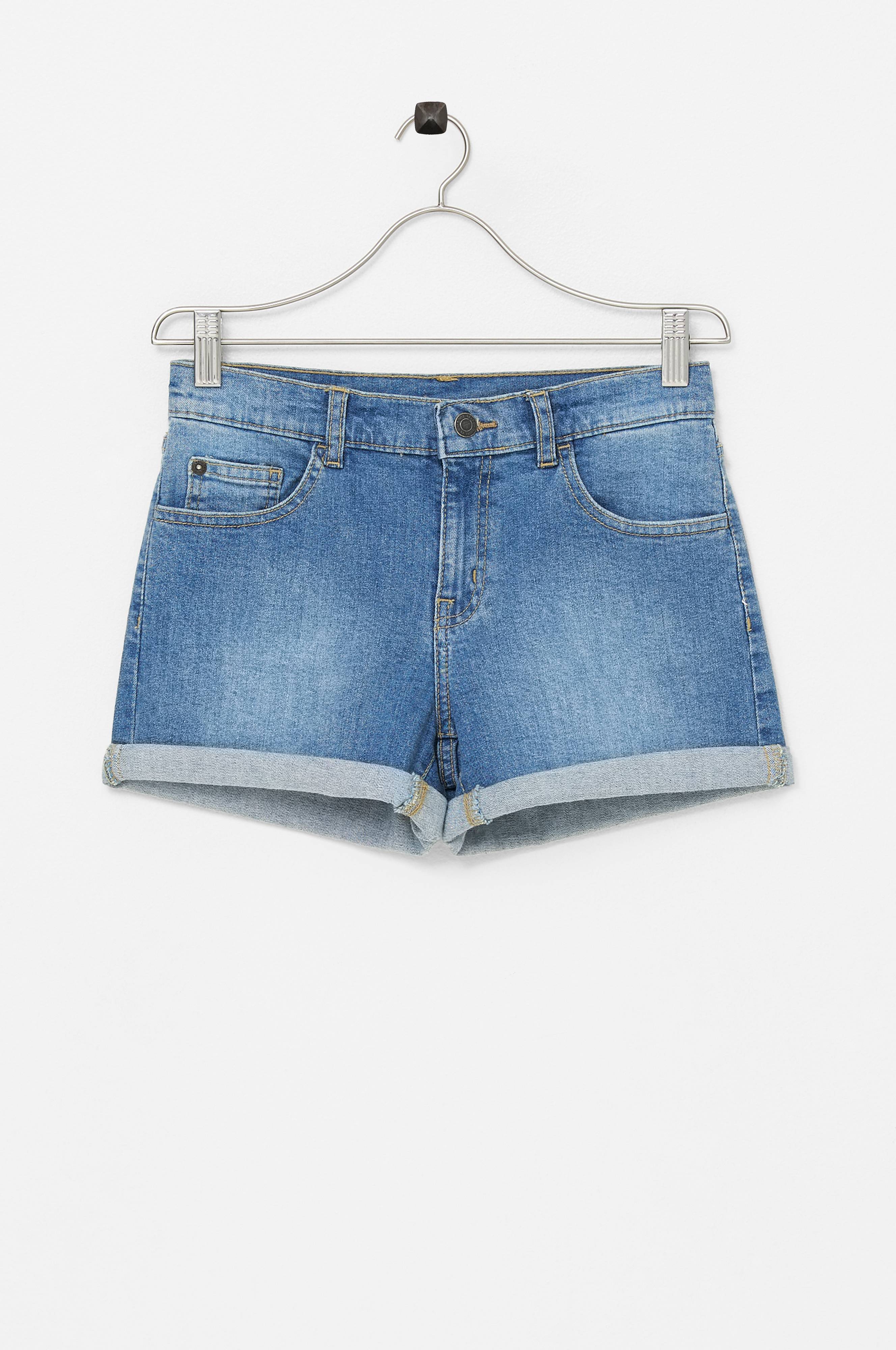 Denimshorts Ester i stretchdenim. 5-lommemodel med linning som er regulerbar på indersiden op til str. 146. Trykknap og gylp med lynlås.