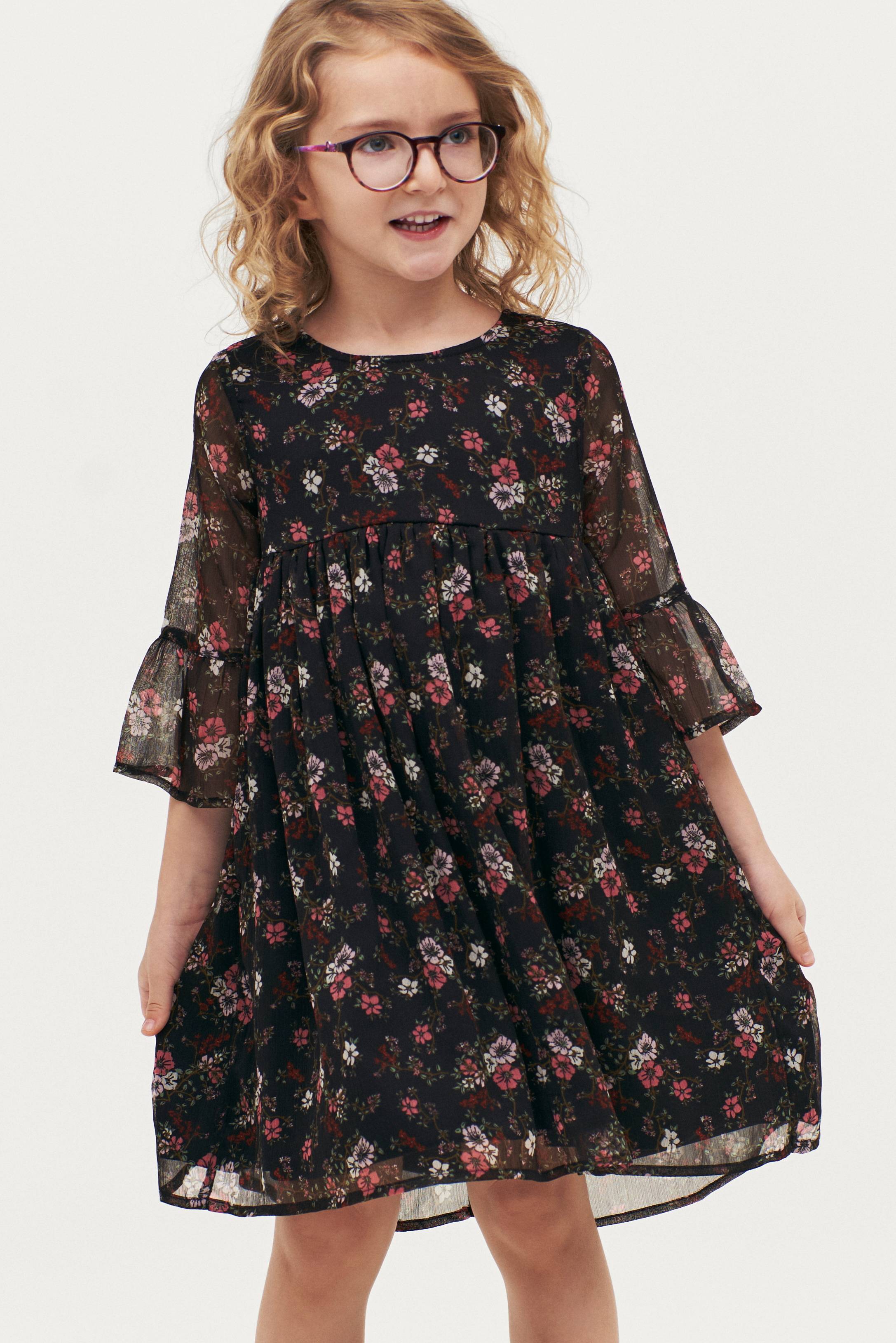 • A-linje design • Rynket søm på toppen • Skjult lynlås bagpå • Langt ærme med volant • Fremstillet af chiffon • Foret • Produktet indeholder genindvundet materiale, som genbruges for at reducere mængden af affald samtidigt med at der ikke anvendes nye ressourcer.