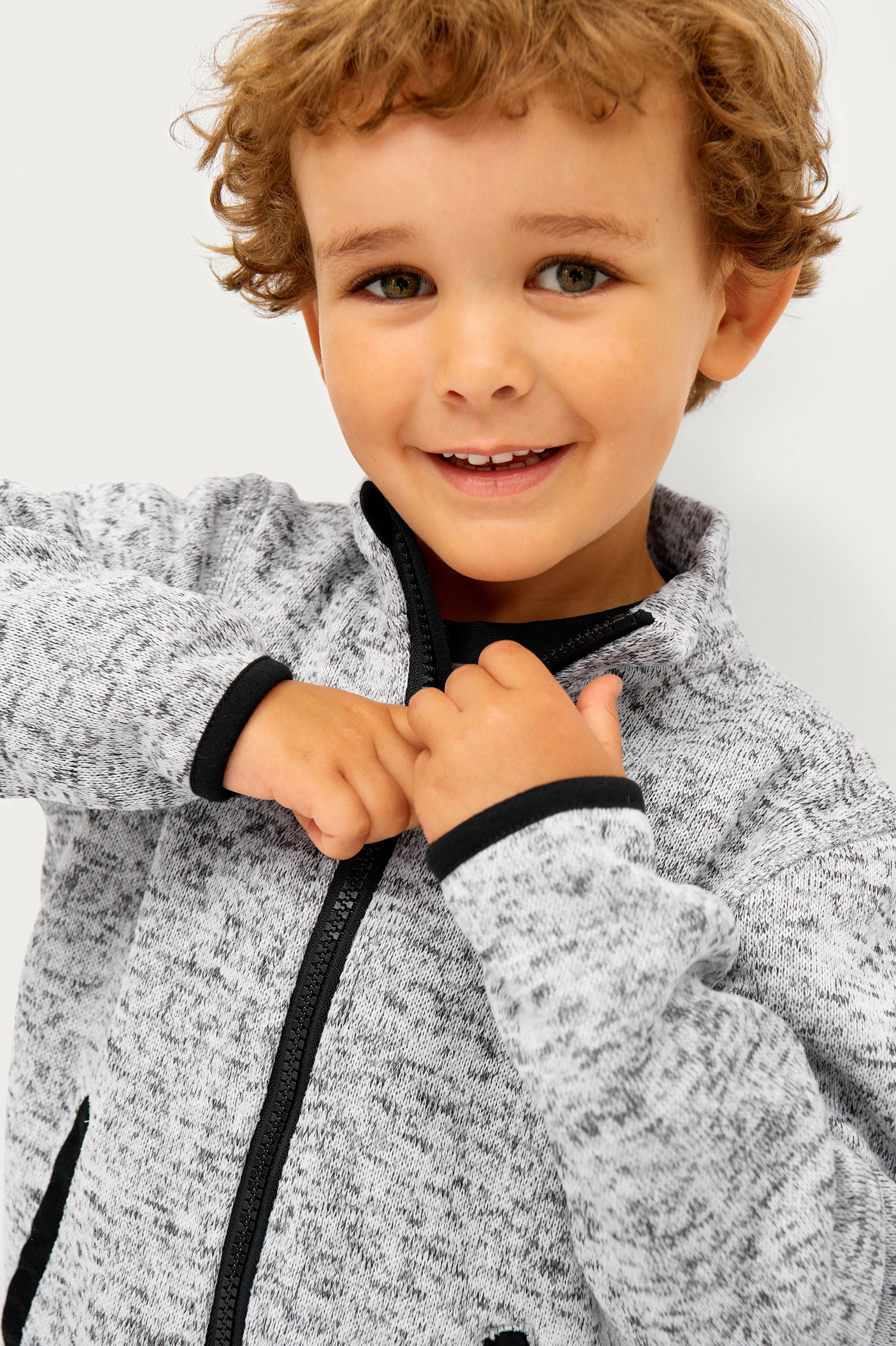 • Trøje i fleece med blød børstet inderside• Høj krave• Lynlås• To lommer foran• Elastiske kanter ved manchetterne og nederst