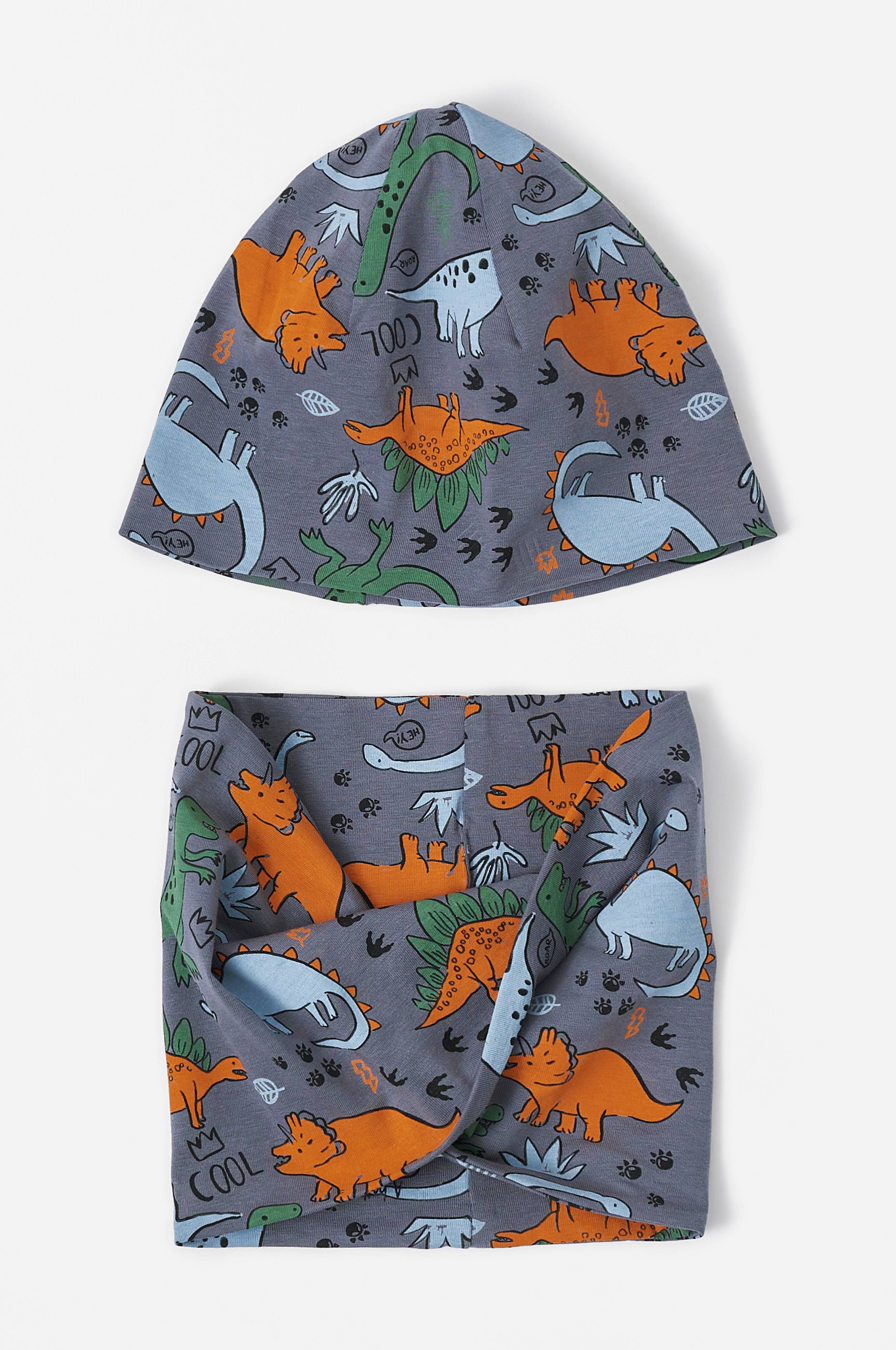 Sæt med hue og tubetørklæde i mønstret bomuldsjersey. Tubehalstørklæde i snoet design. Både hue og tørklæde er i dobbelt stof.
