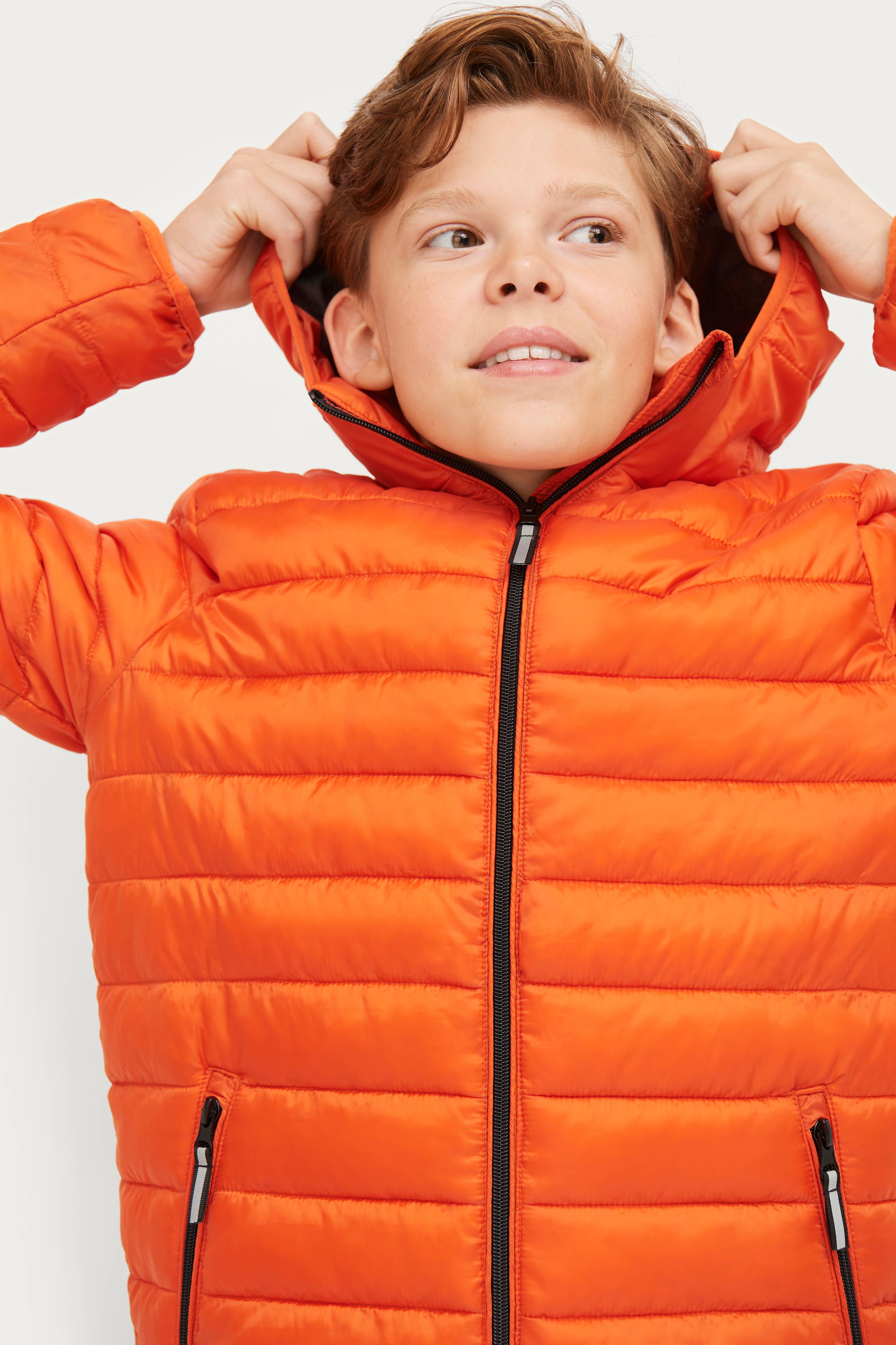 En quiltet jakke med let vattering og aftagelig hætte. Høj krave, lynlås og to lommer med lynlås. Elastisk kantbånd i hætte, ærmekant og forneden. Refleksdetaljer foran.