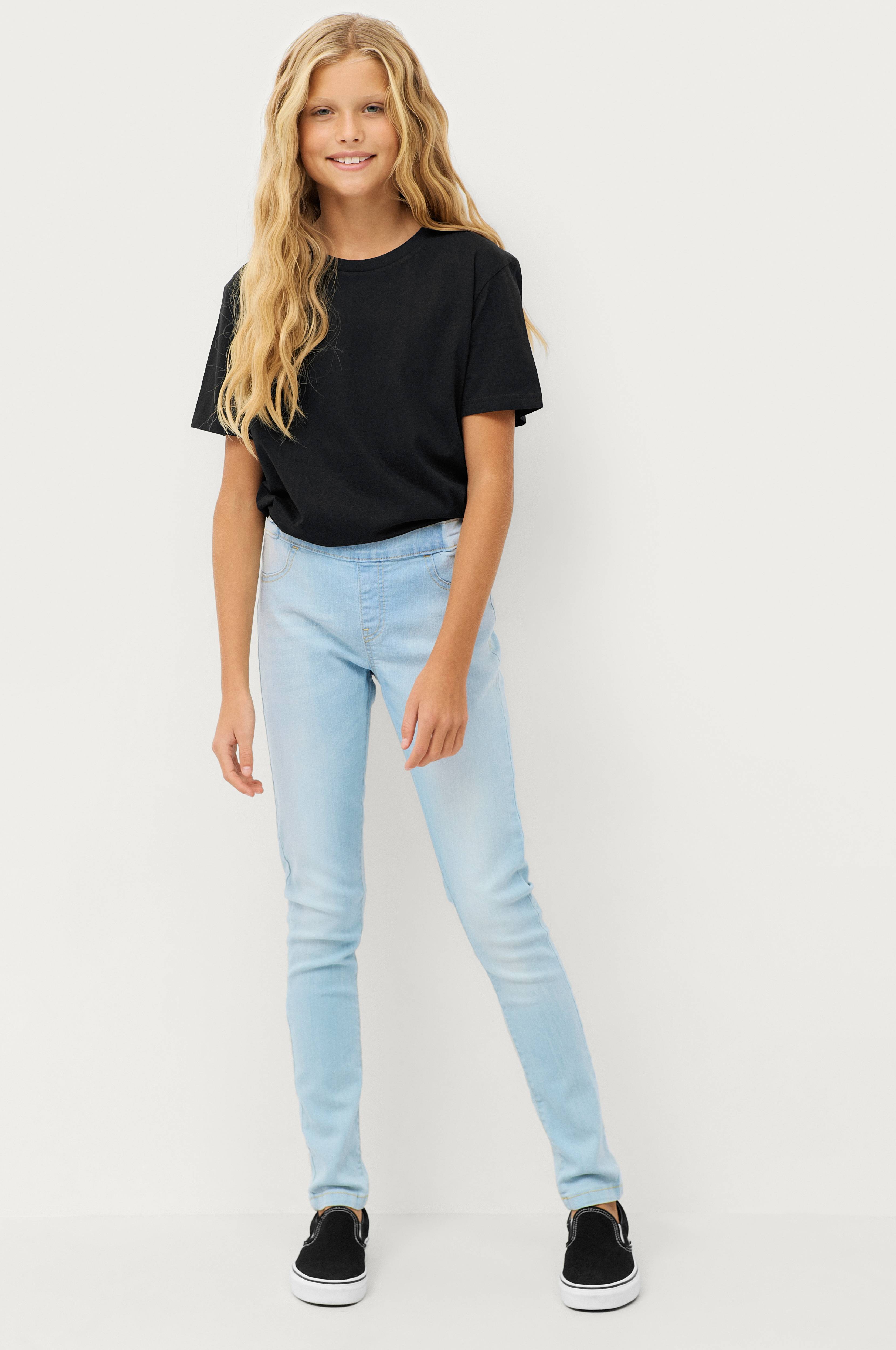 Jeggings Freja i blød stretchdenim med bomuld. Tætsiddende model med elastik i taljen bagpå. Regulerbar linning.